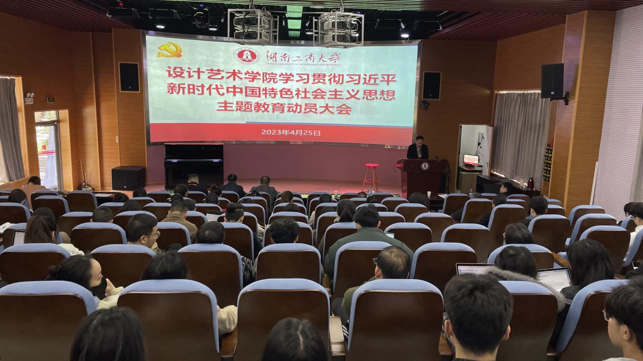 4月25日下午,设计艺术学院在创媒中心N101报告厅召开学习贯彻习近平新时代中国特色社会主义思想主题教育动员大会。学校主题教育指导督查组第五小组组长杜慎仲和副组长徐祥君到我院开展指导督查工作,学院全体教职工、学生党员代表参加了本次会议。