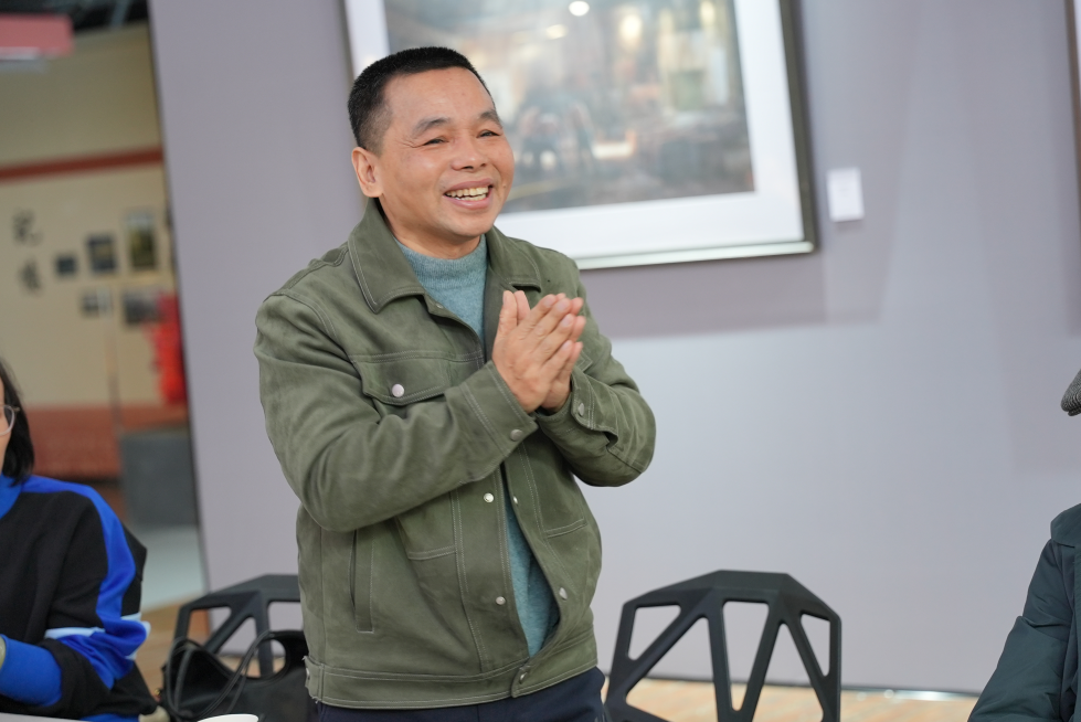 在致谢环节,焦立强老师难掩激动之情。他由衷感谢学校与学院给予的支持和信任,并深情回顾了自己从青涩摸索到风格成型的艺术历程,特别向恩师黄铁山先生多年来在创作理念与技法层面的悉心指点表达敬意与感恩。他动情地说:“没有黄老师的引领,就没有我今日的成就。”真挚的感言引发了现场嘉宾的强烈共鸣。