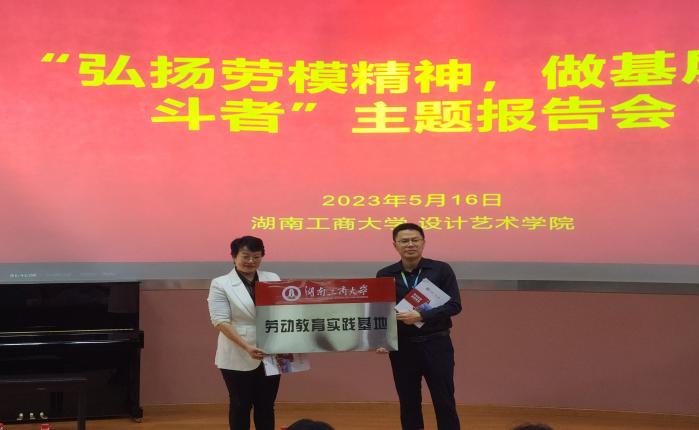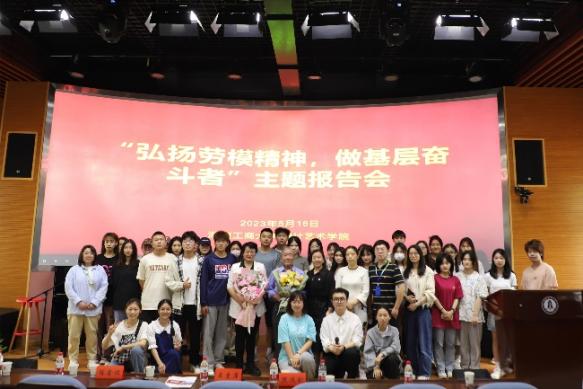5月16日下午,设计艺术学院在岭南校区成功举办“弘扬劳模精神,做基层奋斗者”主题报告会暨党员发展对象培训会。核工业部优秀劳动模范熊运钊、望城坡街道长华社区王爱萍书记、设计艺术学院党委副书记陈鑫铭、学工办主任刘丽和全体辅导员、班委、团学干部及党员发展对象参加本次活动。