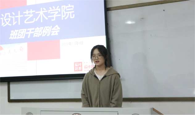 11月6日晚,设计艺术学院于北校区博学楼1601教室组织开展2022级班团干部例会。学工办主任刘丽、团委书记叶亚亚、学生分会主席团成员李泽昊、王瑞、马畅、邓婕、刘灿出席本次例会,参会的还有22级设计艺术学院的各班班委。