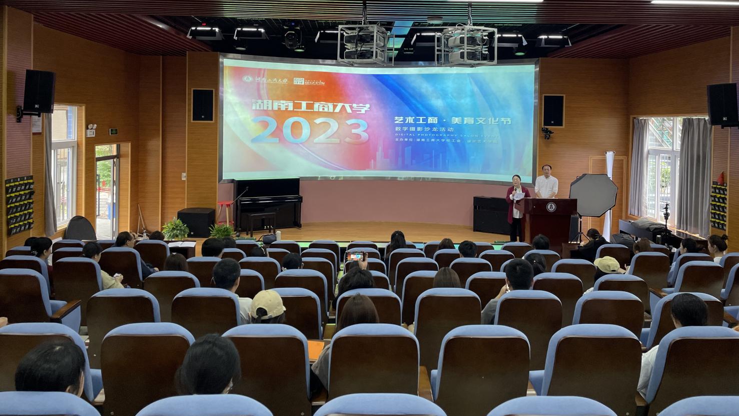 活动第二阶段,湖南师范大学博士生导师、湖南信息学院校长、湖南省高校摄影学会会长黎大志教授受邀来校以“爱好摄影拥有美好”为题作讲座。黎教授从摄影是什么、摄影三要素、新闻纪实摄影、校园摄影、生活记录五个方面阐述自己对于摄影的理解和心得体会,并结合自己的摄影作品进行了生动的讲解,现场师生反响热烈。