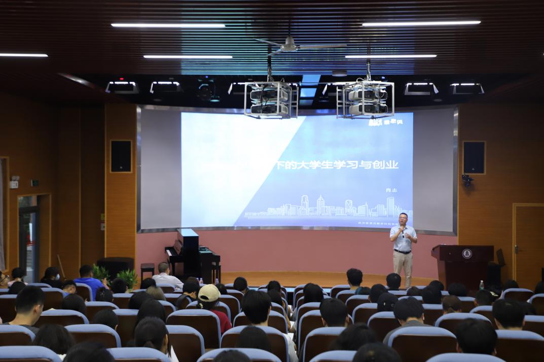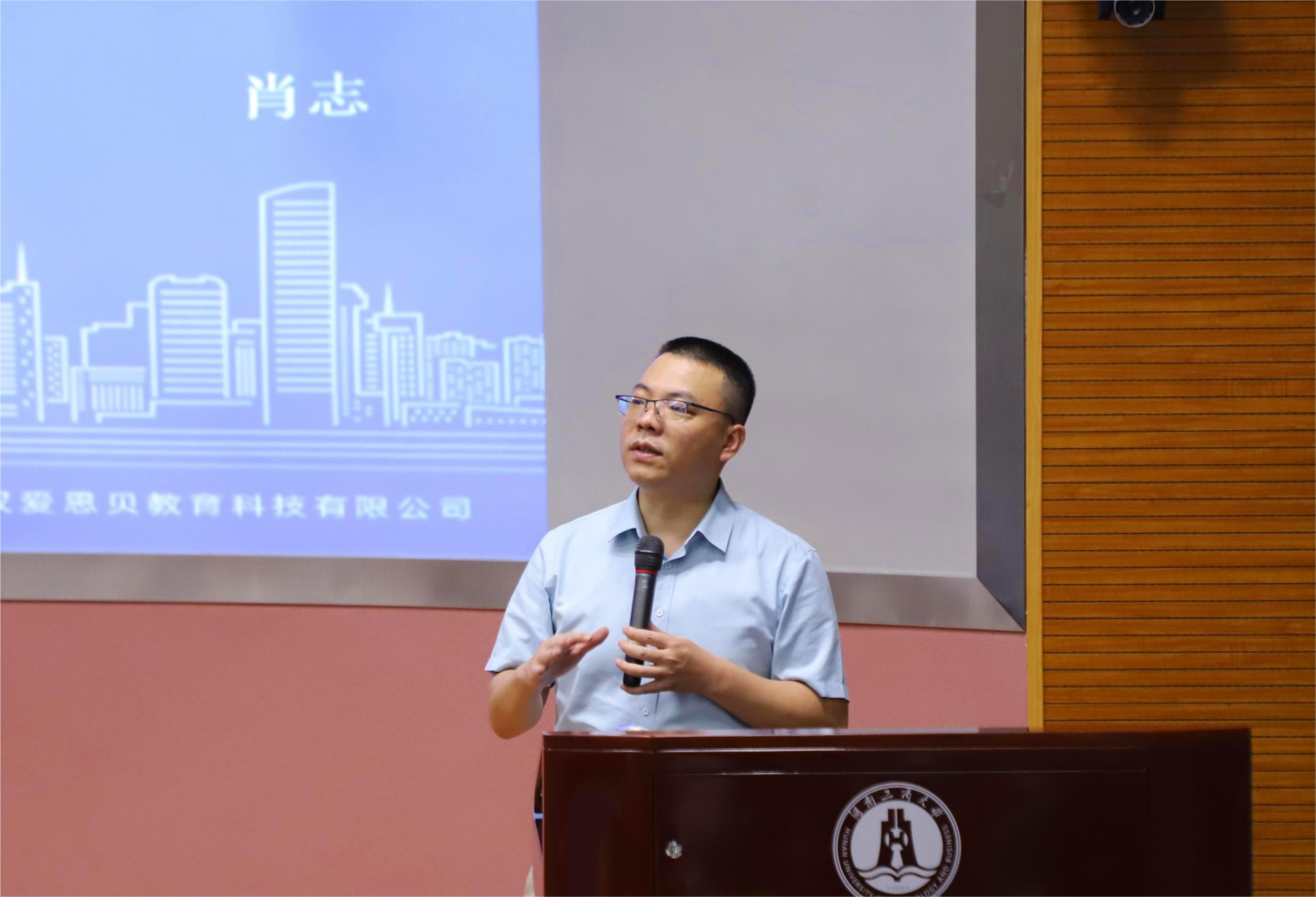 为更好地发挥优秀校友在学生成长过程中的榜样引领作用,激发青年学子逐梦成长,构建校友和学子之间的沟通桥梁,5月31日晚,设计艺术学院邀请1995级校友、武汉爱思贝教育科技有限公司创始人肖志做客湖南工商大学第205期麓山大讲堂之“企业家与创业”论坛,在岭南校区创媒中心N101报告厅主讲题为《AI背景下大学生学习与创业》的专题讲座。设计艺术学院党委副书记陈鑫铭和一百余位师生共同参加活动。