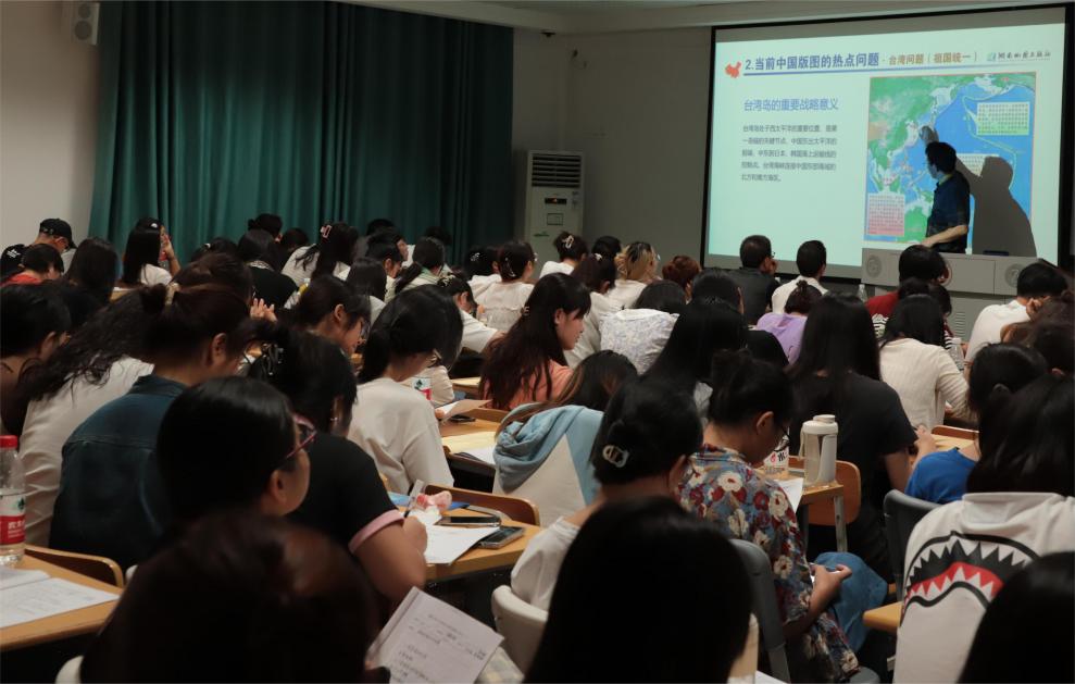 陈鑫铭副书记在致辞中强调了认真学习国家版图知识以及规范正确使用地图的重要性。湖南地图出版社国家知识版图宣传青年讲师封倩深入细致地讲解国家版图的概念和重要性,她从地理、历史、国家文化等多个维度向学生们阐述了国家版图在历史进程中的重要意义,让大家深入认识了国家版图作为国家主权与领土完整的象征,体现着国家的尊严和荣耀。