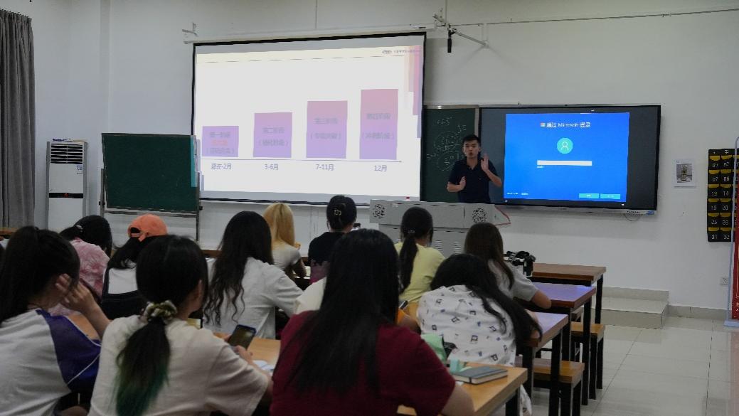 2023级研究生代表周文荟同学分享了自身备战考研、成功上岸的经验与心得。她指出,要注意考研的重要时间段,统筹时间安排,做好学习规划,调整心态、抵制诱惑、拒绝精神内耗,做好考前各项准备;同时,她分享了专业理论、专业手绘、政治、英语这些考研科目的不同备考方法,并鼓励同学们,“踏踏实实地走好每一步,你走过的路,每一步都算数。”
