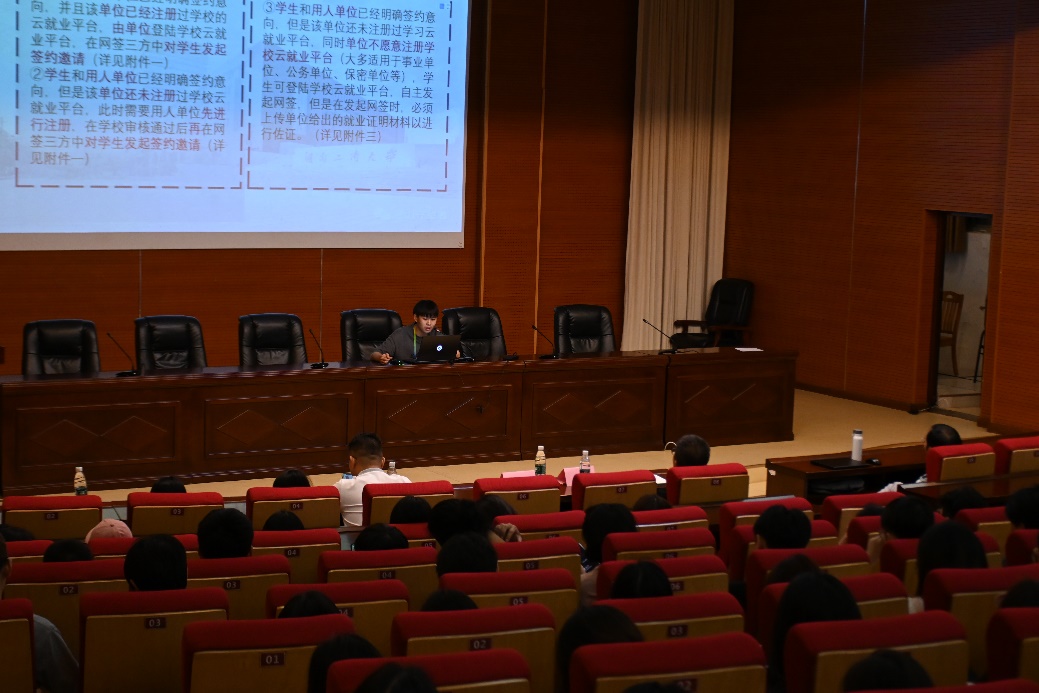 学院就业专干刘余君老师对就业相关事项展开讲述,强调签订三方协议和劳动合同,确保毕业生保护自身劳动权益。对网上签约流程、就业协议书、就业推荐表申请流程进行讲解,向毕业生们介绍学校招聘会的具体信息,并提供学院就业辅导预约服务,帮助毕业生更好地就业。
