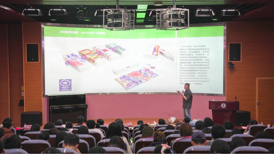于光老师的讲座深入浅出,带领同学们以新视角重新认识了绿色设计的创新之道,让大家了解绿色设计未来发展的无限可能性。他指出,绿色创新包装设计不仅仅是包装表面的视觉表现,包装设计是个综合学科,不仅要有良好的视觉平面艺术设计,要结合包装的结构设计,还要兼顾良好的功能创新,以及人性化的开箱体验等。从事设计工作要从工艺、材料的考究、印刷技术的理解、生产后道的实现以及适配于批量化生产来综合考虑包装设计。于光老师还分享了自己深耕行业数十年,荣获的“IF”国际设计大奖、“reddot”全球红点设计大奖、“世界之星”设计大奖、“GMark”设计奖、A‘Design设计奖、“金点设计奖”、“红星奖”“中国之星”等多项获奖作品,展示的作品无不彰显出绿色、环保、便捷的设计理念。