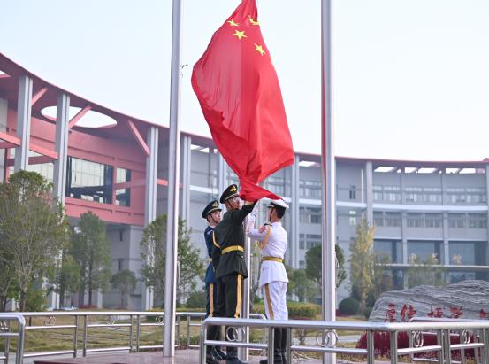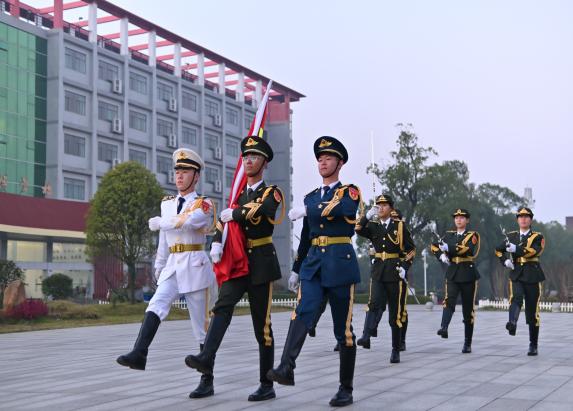 七点整,国旗护卫队迈着整齐划一的步伐走向国旗台,随着雄壮激昂的的国歌响起,全体师生高唱国歌、行注目礼,共同见证了五星红旗冉冉升起的庄严时刻。