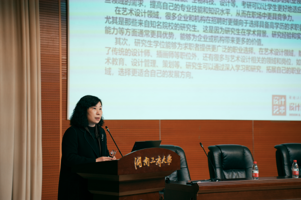 分管研究生教育的副院长关红教授深入剖析了考研的重要意义与价值,强调了考研对于个人成长和自我竞争力提升的重要作用,并结合当前设计学考研的实际情况,鼓励同学们要精准把握考研形势,精确自我定位,为考研之路做好充分准备。分管教学工作的副院长陈旺教授从学业规划、就业前景以及学院支持措施等多个角度进行了全面细致的讲解,他进一步强调了考研对于个人未来发展的重要性,明确表示学院将在人力、物力等方面给予全力支持,助力学生们顺利迈向考研的成功之路。