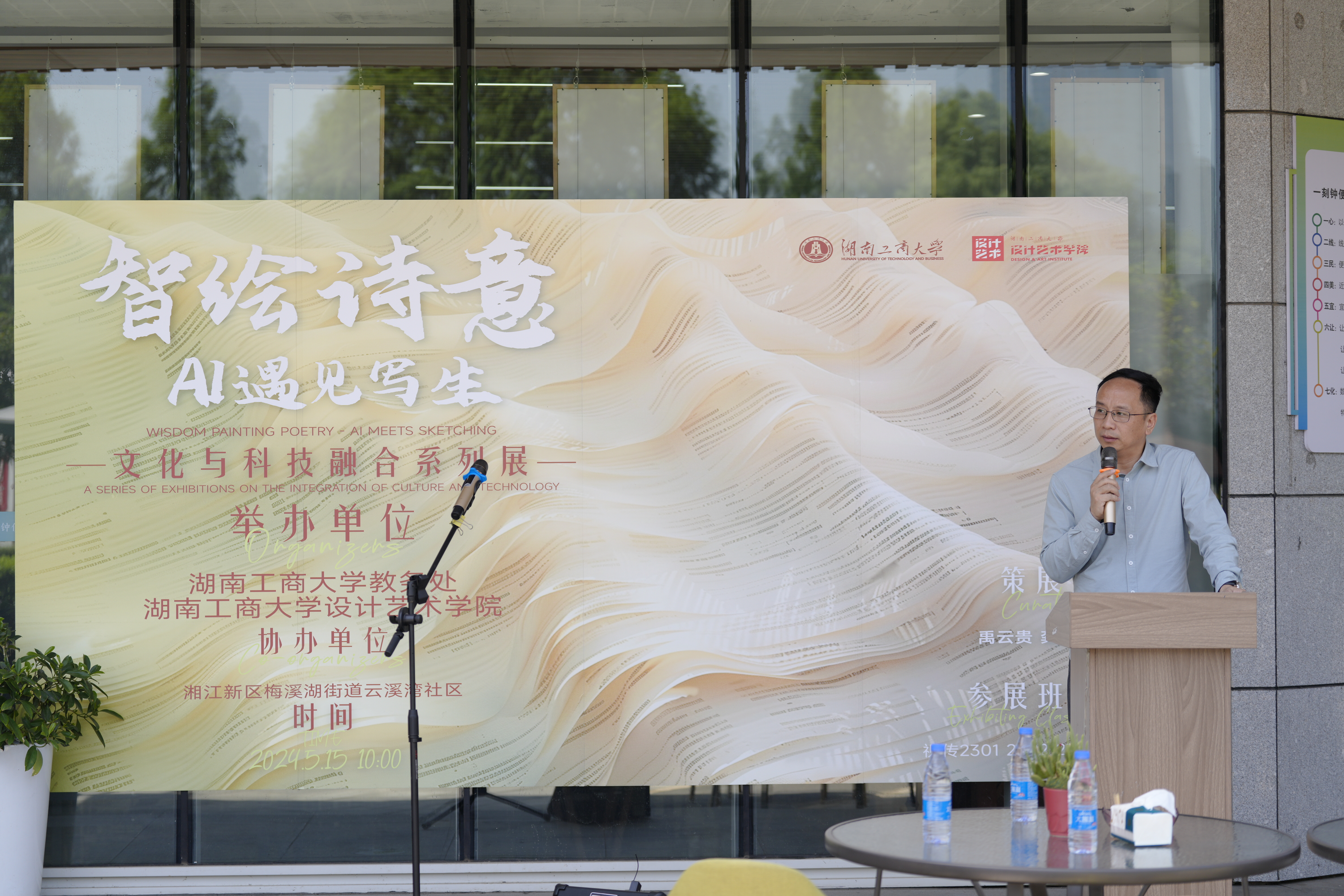 策展人禹云贵老师在开幕式上深情地表示:“通过此次展览,我们希望探索艺术与技术的新交融,以及如何让艺术教育更贴近时代发展的需求。在所有课程深化AⅠGC辅助设计的同时,这也是我们学院与社区合作的一次成功范例,通过艺术美化社区环境、服务社会。”