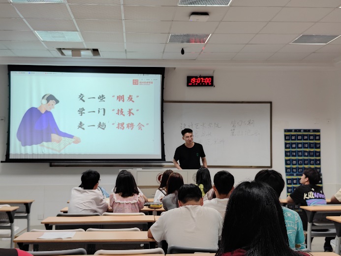 在职业规划和就业方面,学长学姐们热情鼓励在场的同学们要把握大二、大三的黄金时期,积极投身于实习实践,提前了解职场环境,为未来的就业做好充分准备。此外,他们还特别提醒同学们要及早了解并掌握三方协议、五险一金等就业相关知识,以保障自身权益。主讲人们还着重强调了实习经历在未来职业发展中的重要性,并建议同学们勇于跨出专业界限,尝试新媒体运营、策划等多元领域的实习机会,以此拓宽自己的职业视野。