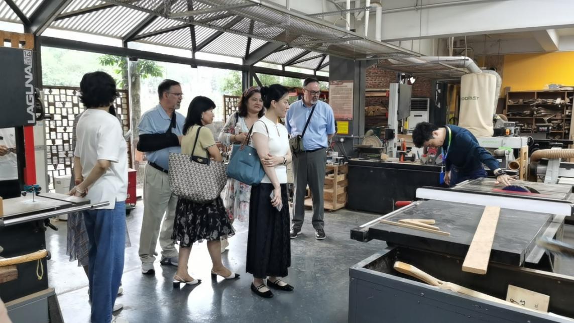座谈会结束后,代表团参观了岭南校区和设计艺术学院的教学环境和设计作品,对学生的创意与实践能力大加赞赏,同时也对学院的教学质量与学术氛围表示高度认可,并表示期待未来能有更多机会与湖南工商大学进行深度交流与合作。