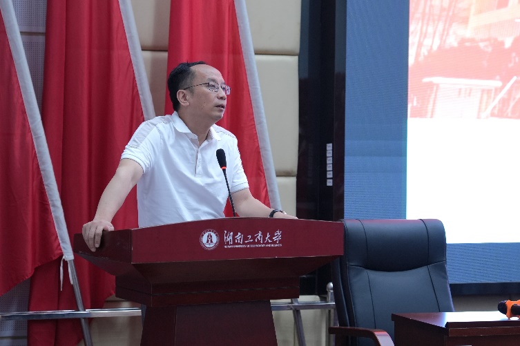 党委副书记陈鑫铭老师在期末考试临近、学业压力加大以及暑假期间时间充裕的背景下,全面分析了学生们要如何缩小成绩差距,从而能够顺利升入更高年级。他还详细阐述了如何规划学业进程,帮助学生明确学习目标,有效地管理时间。他引用陈晓红院士在2024年毕业典礼上的致辞“始终向下扎根,不懈向上成长”对同学们寄予了深厚的期望。副院长关红教授作考研动员主题宣讲,她希望同学们认真考虑考研这条道路,它是人生非常重要的部分,可以延续自己求学的梦想。她着重介绍了学院研究生教育的两个学位点,让同学们对学院的研究生招生和培养有了更为清晰、精准的认识和了解,让有考研计划的同学对未来有一个更为明确的规划。