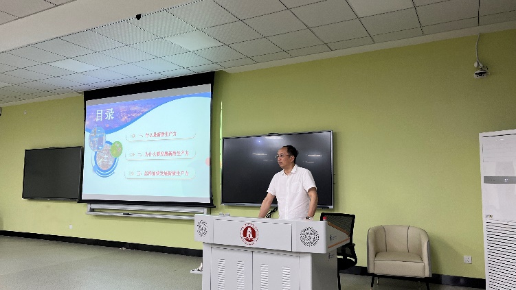 紧接着,唐朝晖教授引用一系列详实的数据和案例,深入浅出地向同学们阐释了推动新型生产力发展的重要性与紧迫性。他强调,新时代下,发展新质生产力不仅是经济增长的关键驱动力,更是实现可持续发展目标的重要途径,为同学们指明了发展新质生产力的必要性。