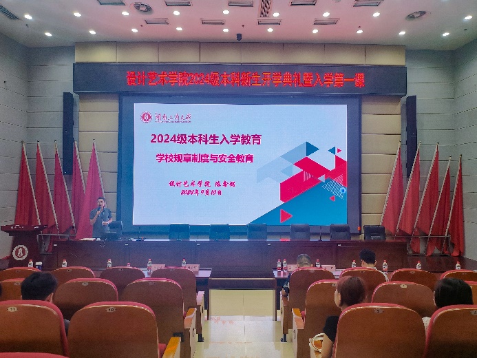 9月10日下午,设计艺术学院在北校区图书馆报告厅隆重举行2024级本科新生开学典礼暨入学第一课。设计艺术学院全体院领导与老师代表出席会议,全体2024级本科新生共同参与,会议由学院学生工作办主任、2024级年级辅导员刘丽老师主持。