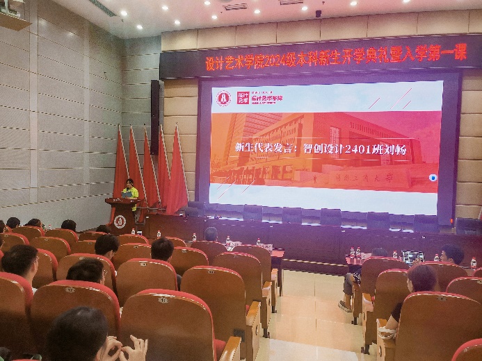 随后,来自AI与创意设计院士卓越班智创设计2401班的刘畅同学作为新生代表发言。她满怀激情地表达了对大学生活的期待与规划,并号召全体新生珍惜大学时光,勇于探索未知,共同努力书写属于自己的精彩大学篇章。
