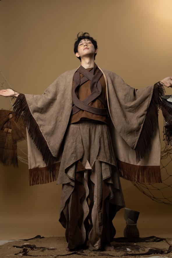 作品简介:“鱼皮衣”是中国赫哲族的传统服装中最具特色、最有代表性的服装,却具有很强的艺术性和实用价值,潜藏着丰厚的人文含义。但因精湛的鞣制技术制作复杂,目前基本面临失传。要让赫哲族鱼皮衣这个宝贵的非物质文化遗产在世界上传承下来,需要融合更多的创新元素。研究主要通过网上调研,大量搜集鱼皮衣的资料,深入了解赫哲族鱼皮衣的制作过程,工艺手法,现代价值,购买鱼皮,进行面料上的研究,探寻鱼皮衣在现代服装中的性能。