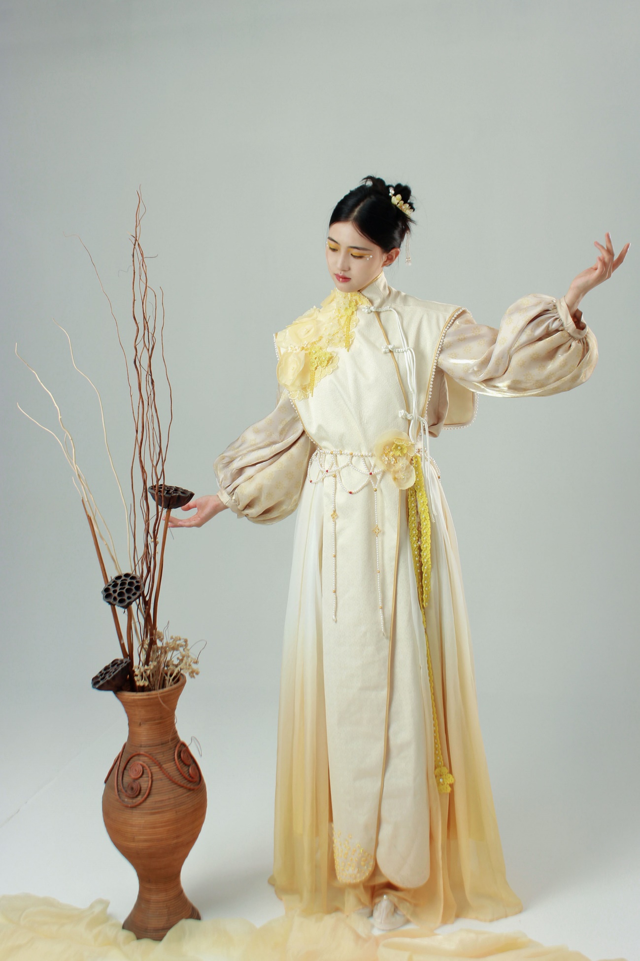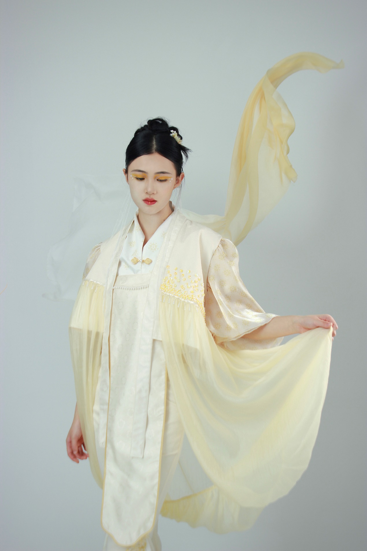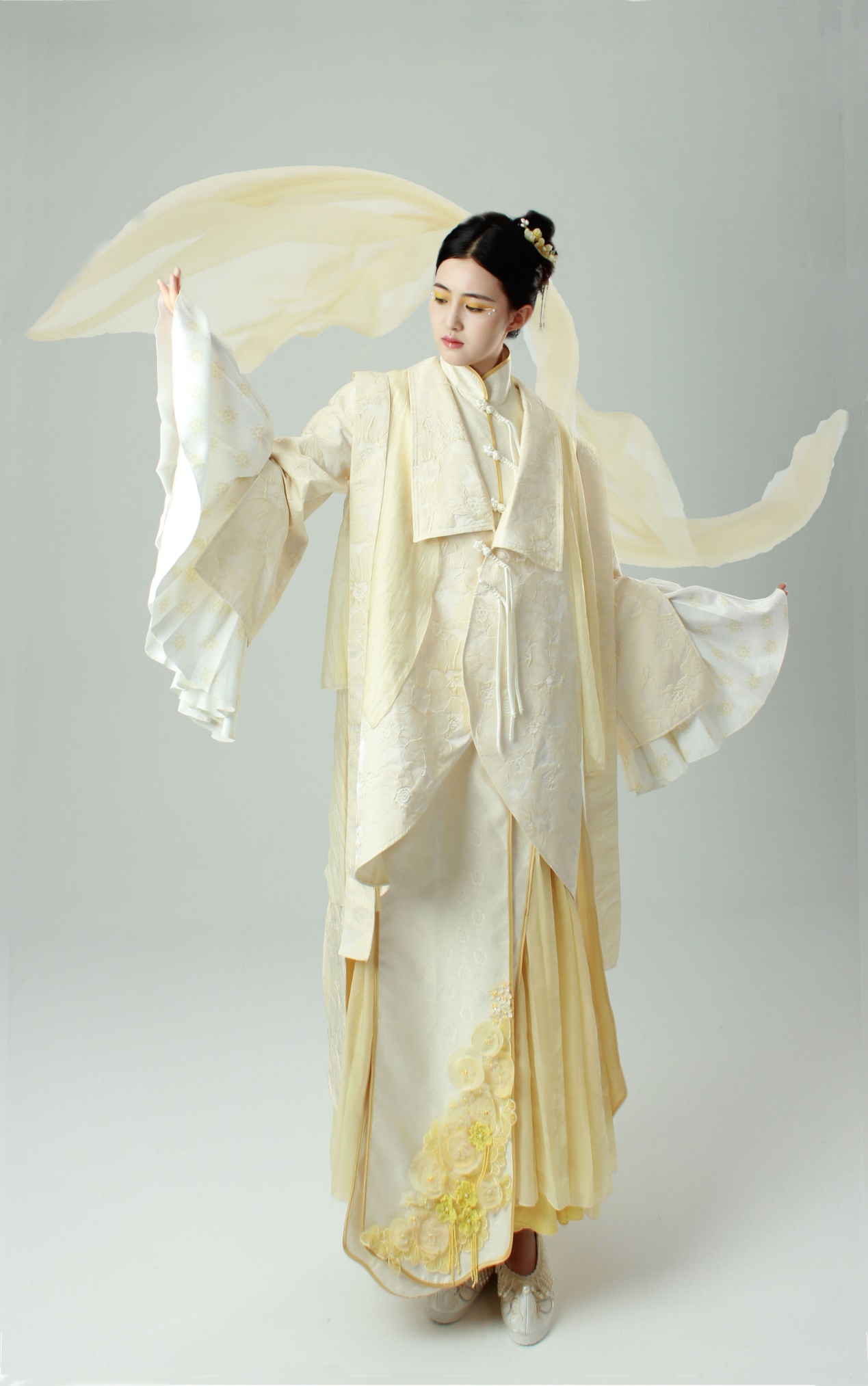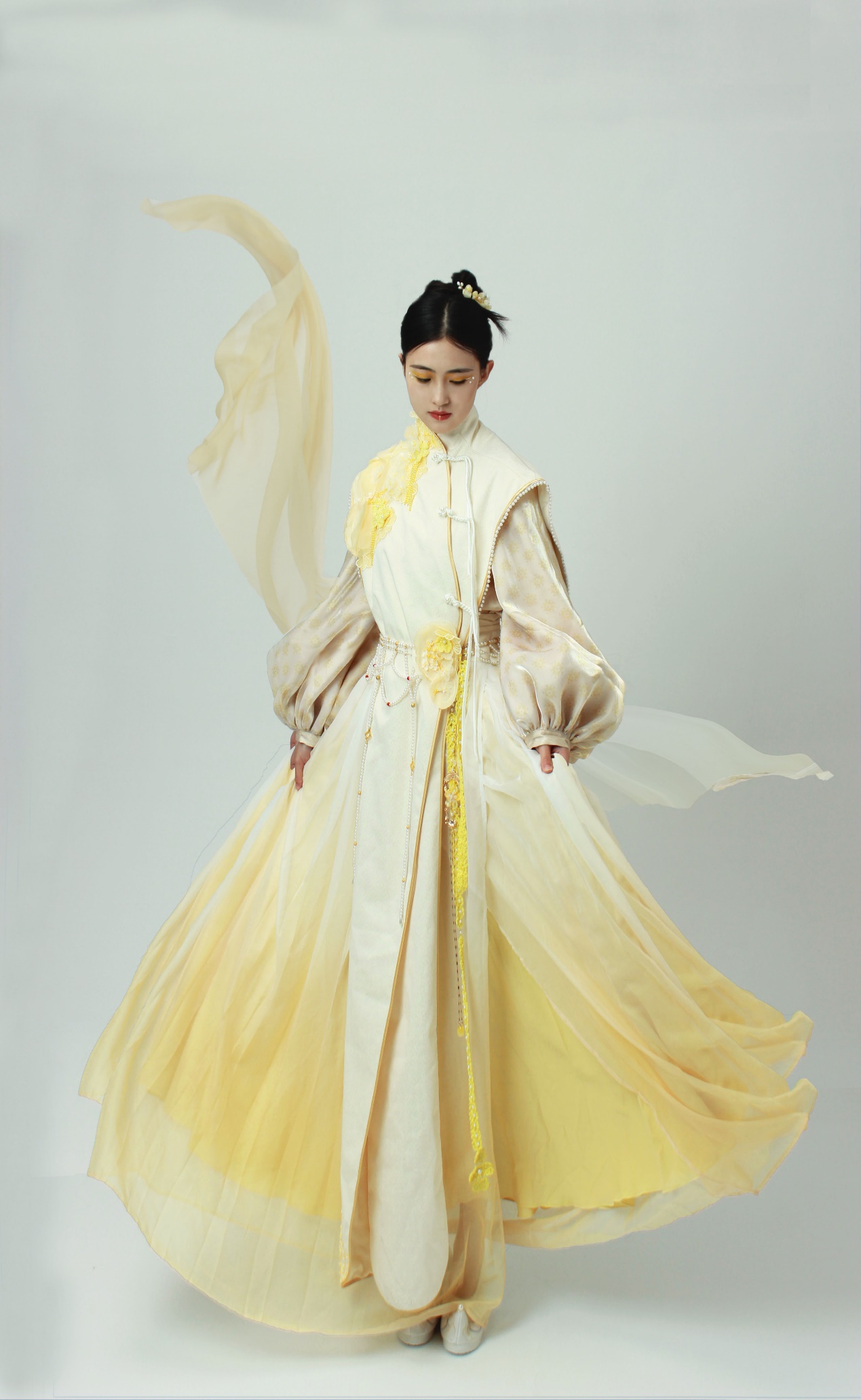 作品简介:本系列服装以宋代蹴鞠为设计灵感来源,主要提取了宋代蹴鞠古画中的服饰纹样特点和宋制十片蹴鞠为基本的设计元素,款式上将宋制仕女蹴鞠服饰和现代流行设计相结合,工艺上选择用现代钩针和串珠技术相结合的方式来表达蹴鞠的缝制工艺,以望通过设计传播蹴鞠文化。