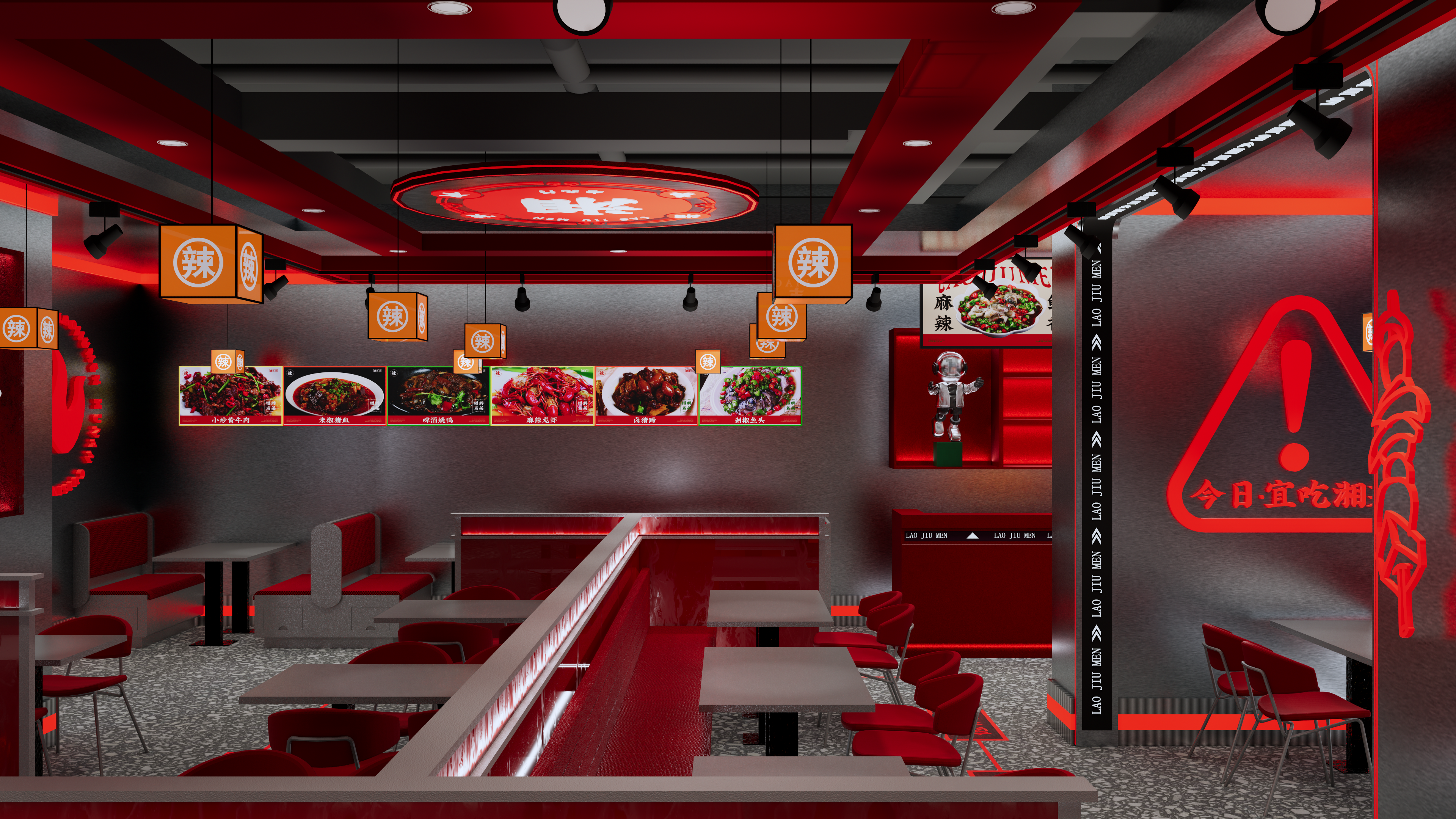 作品简介:“老九门”餐饮品牌是长沙本地的特色湘菜餐饮品牌,融合湖南的地域文化特色,打破原有的传统老旧装修风格,采用新奇现代的国潮风格进行设计,应用于店铺空间设计,文创衍生产品设计,进一步宣传湖南湘菜文化,增强品牌知名度。在设计上注重年轻化的就餐体验,强调传统元素与现代材质的整体和谐,吸引更多顾客就餐打卡,提高空间设计的商业利用价值。
