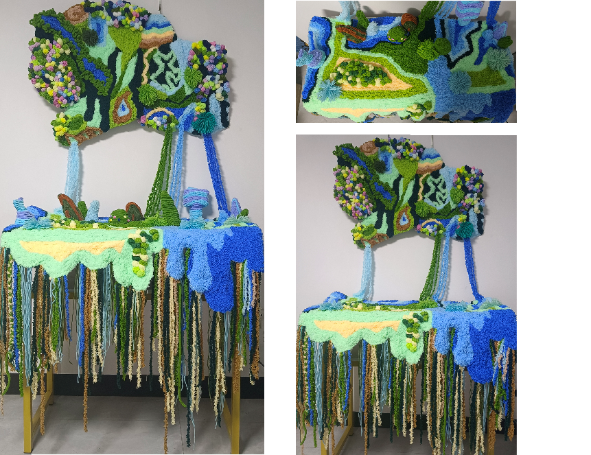作品简介:基于对自然的热爱和如今环境问题大趋势的现状,主要以自然为主题进行纤维编织来体现自然景观与地貌的造型,添加触觉质感,拉近人与自然的距离,使自然以另一种方式留存。