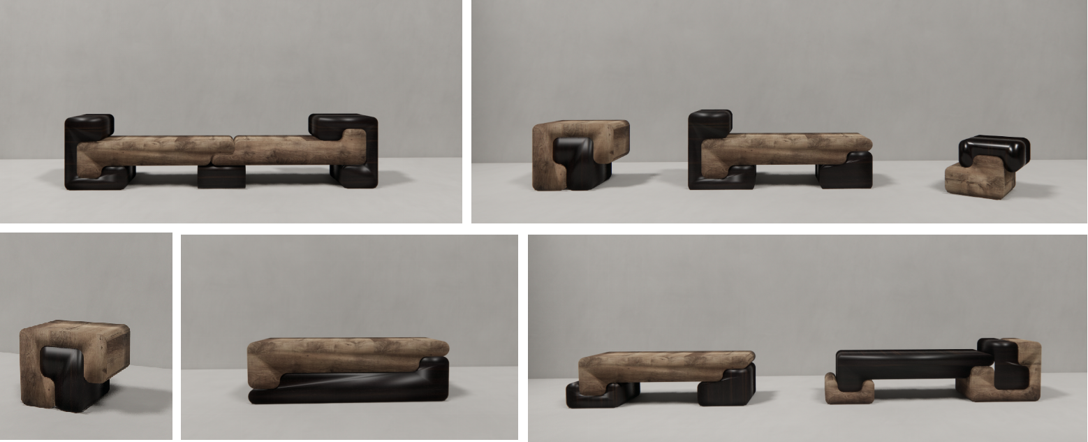 作品简介:以长沙的文化入手,把握长沙特色文化,以麻将为灵感来源,进行提取、变形和再设计,形成模块化的家具。同时将模块化家具中具有的可移动、可组合、可再利用等特点,融入微更新理念,针对周围环境,考虑多种因素进行思考,设计出彰显长沙文化特点的“户外坐椅”。