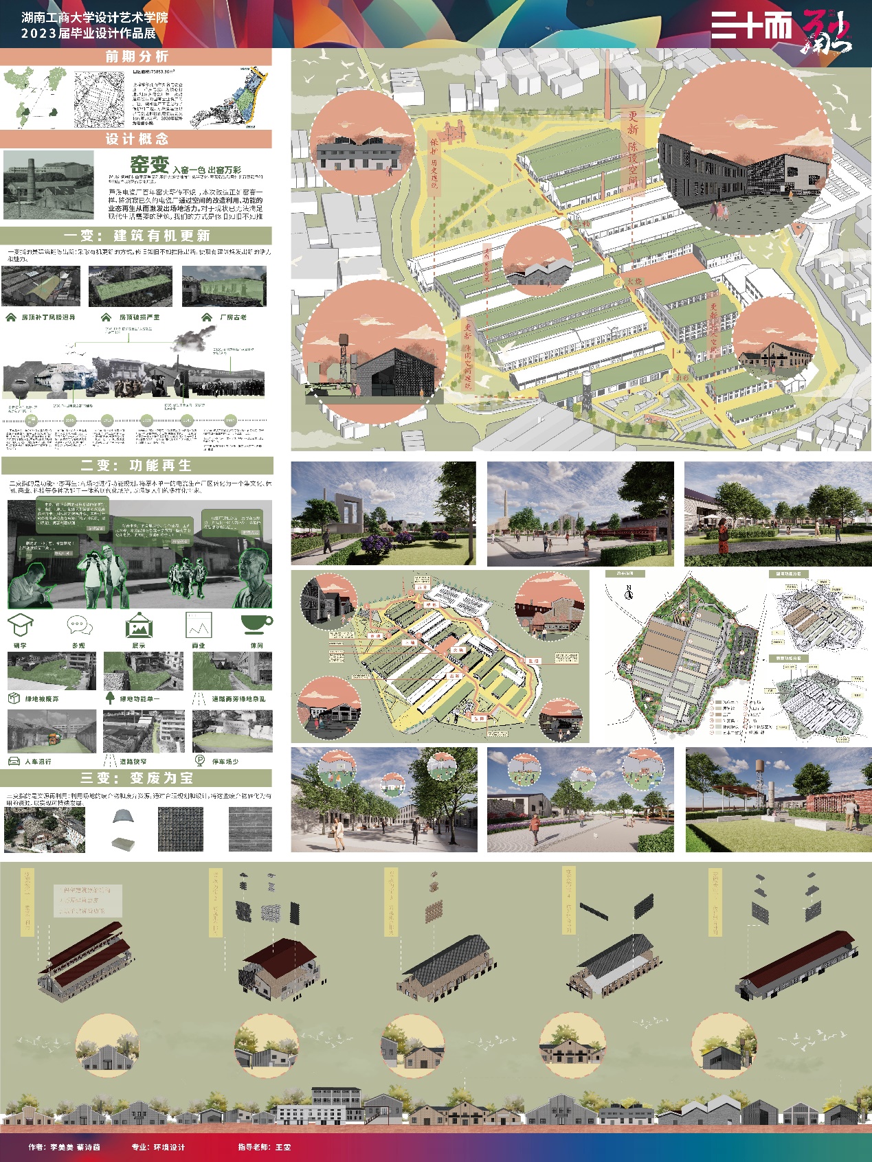 李美美 蔡诗茵作品简介:本次项目旨在将江西萍乡上埠电瓷厂改造为电瓷博览园,通过利用工业遗存发展文化创意产业,保护和展现建筑原始面貌的同时,形成新的使用功能,使废弃工业设施再生,融入现代生活。通过“三变”策略,即建筑推陈出新、功能业态再生和资源再利用,将芦溪电瓷厂的景观特色与现代生活需求相结合,创造出一个具有独特魅力的现代化场所。