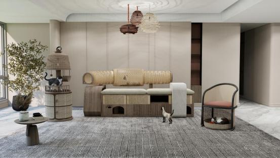 王新奥作品简介:现如今更多人选择饲养宠物陪伴自己,“猫经济” 也随之蓬勃发展。本次设计采用宫廷猫咪的理念,用古代灯笼与祥云的元素,让整个设计富有中国韵味。在结构是将家更加简洁化,使得在使用上更加简单方便清洗,更加能融入到小空间中去,方便人与猫互动。