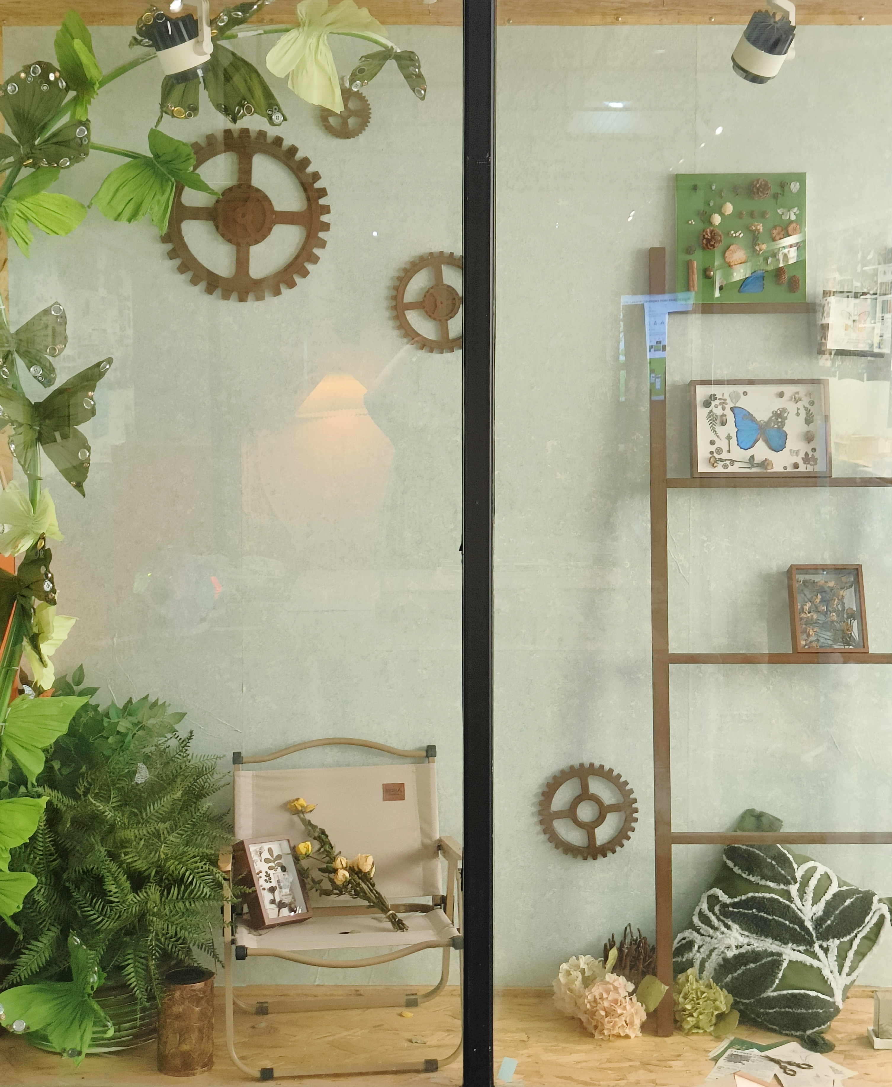 罗煜作品简介:本设计用蝴蝶元素进行创作,意味着进化与重生,意味着生命的绵绵不绝。同时受蒸汽朋克这类亚文化的启发,以手作工作室为设计对象;融合蝴蝶元素与蒸汽朋克的积极内核,与记录生命的植物标本放在一起。加深人们对生命的思考,打造让人更加热爱生活珍惜生命的植物标本手作室。