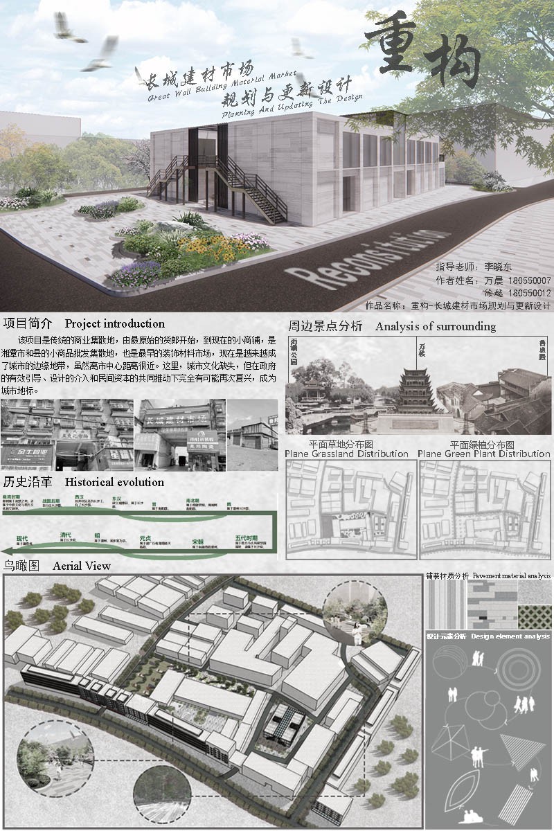 作者:孙宁友作品简介: 长城乡建材市场的规划与更新设计的核心理念是--在原来的基础上进行旧改设计使其进行振兴与更新的发展。因此,再设计上主要包含两方面的因素,即新的生活方式与历史文化的对话、普通材料的创造性运用以及新的可能性。新技术、新材料的应用、新与旧的协调与舒适度、视觉美感整体调性的把握与细节的处理。在保障当地居民利益的前提下进行节点式的局部改造,提升空间的利用效果、以求完善产业链条,促进业态的正向发展、将更新的价值发挥道最大化。