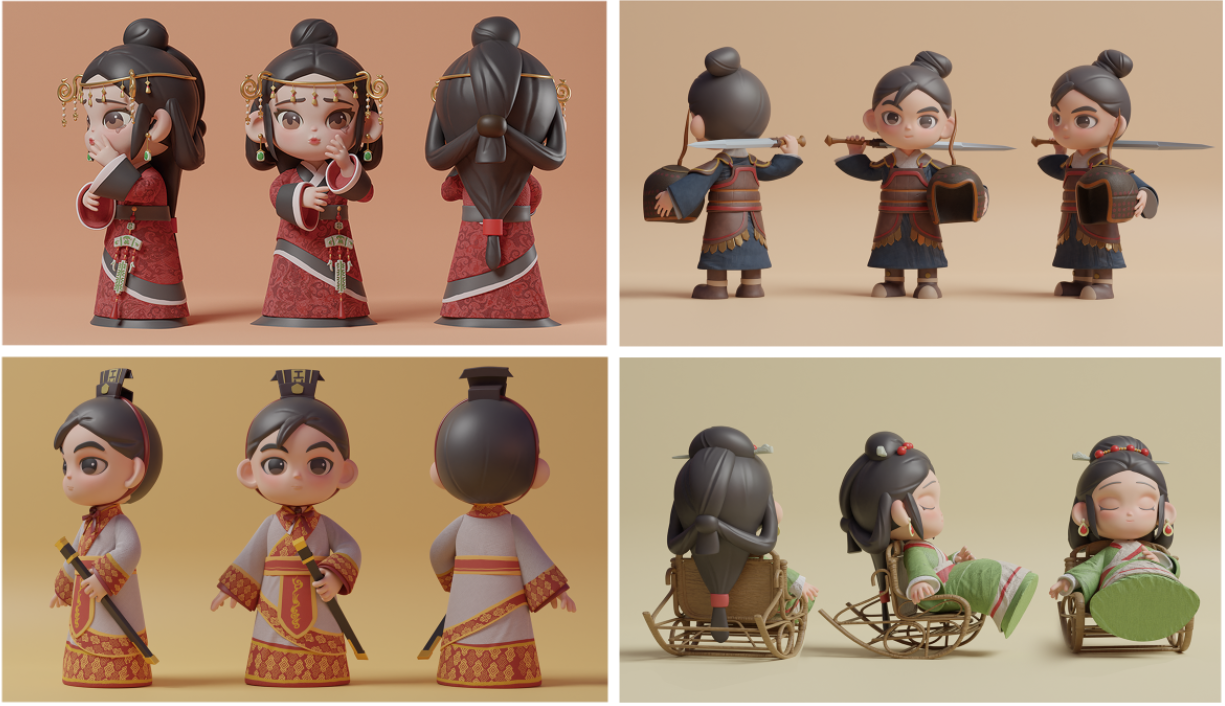 作品简介:为创新湖湘传统文化传播形式,本组设计马王堆出土的“辛追夫人”进行了系列创作:数字人IP设计、VR绘画微电影、数字展厅,三部分设计相互穿插、联系紧密,三项设计分别依托于最新的数字信息技术来实现。三组设计组成一套完整线上线下、虚实共生的数字空间和产品,致力于新媒体技术在设计艺术中的创新应用。