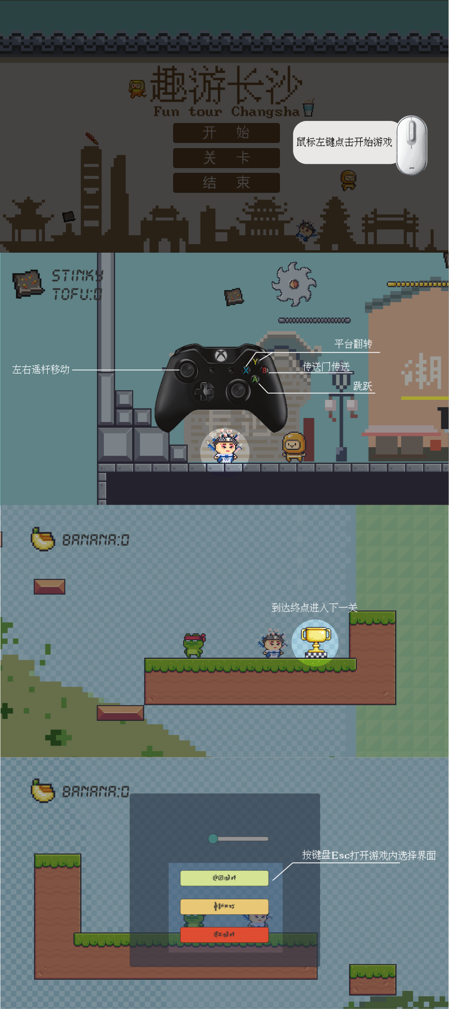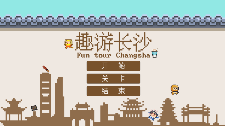 作品介绍:长沙近年来不断创新发展成为网红城市,本交互游戏设计以长沙文化为主题,利用游戏的传播性与交互性在长沙的文化与历史中提取元素,宣扬长沙文化与历史,通过本设计使观众在与游戏交互时,了解到长沙这座古老城市表现出来的文化信息和其蕴含的精神。