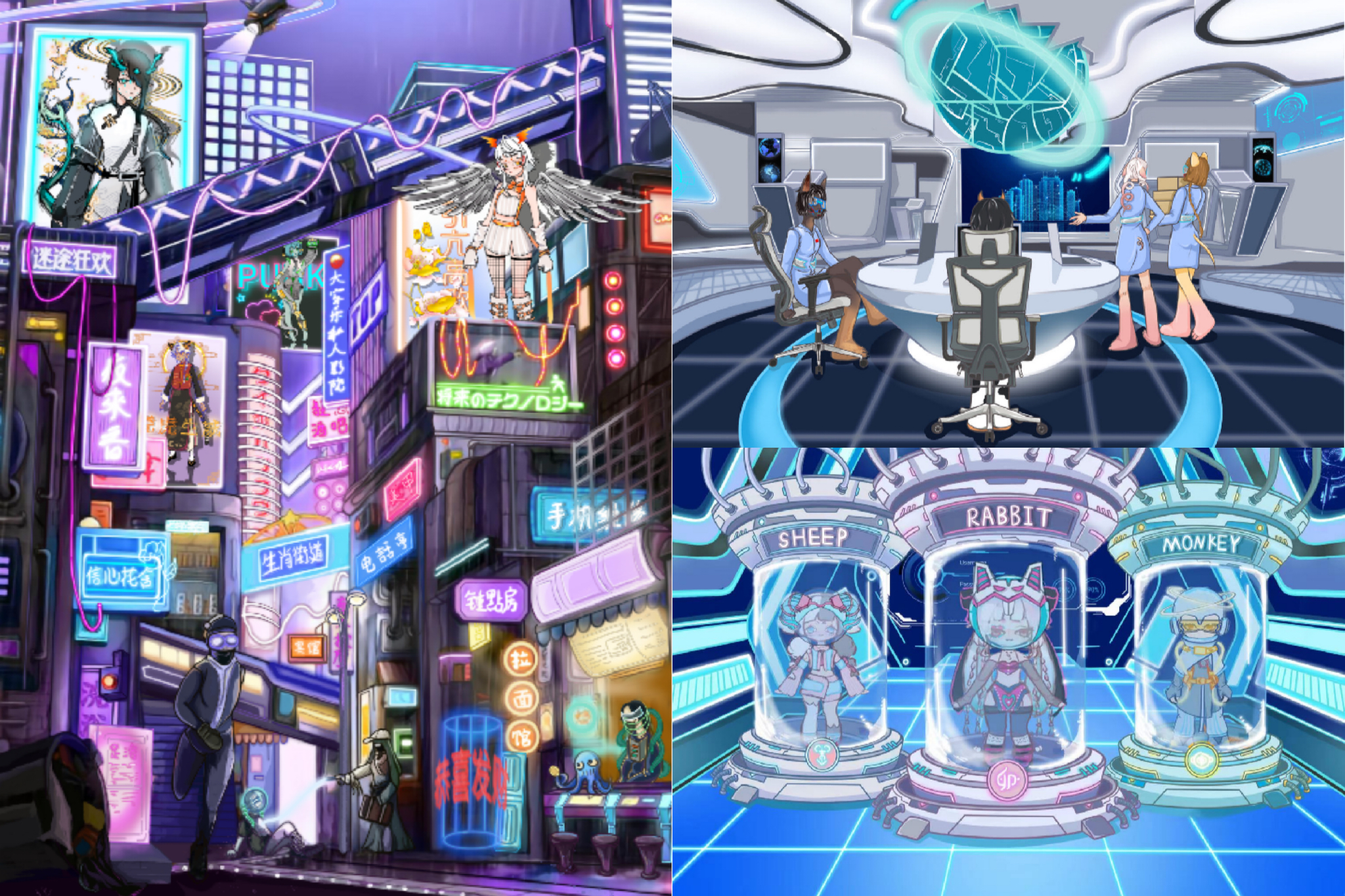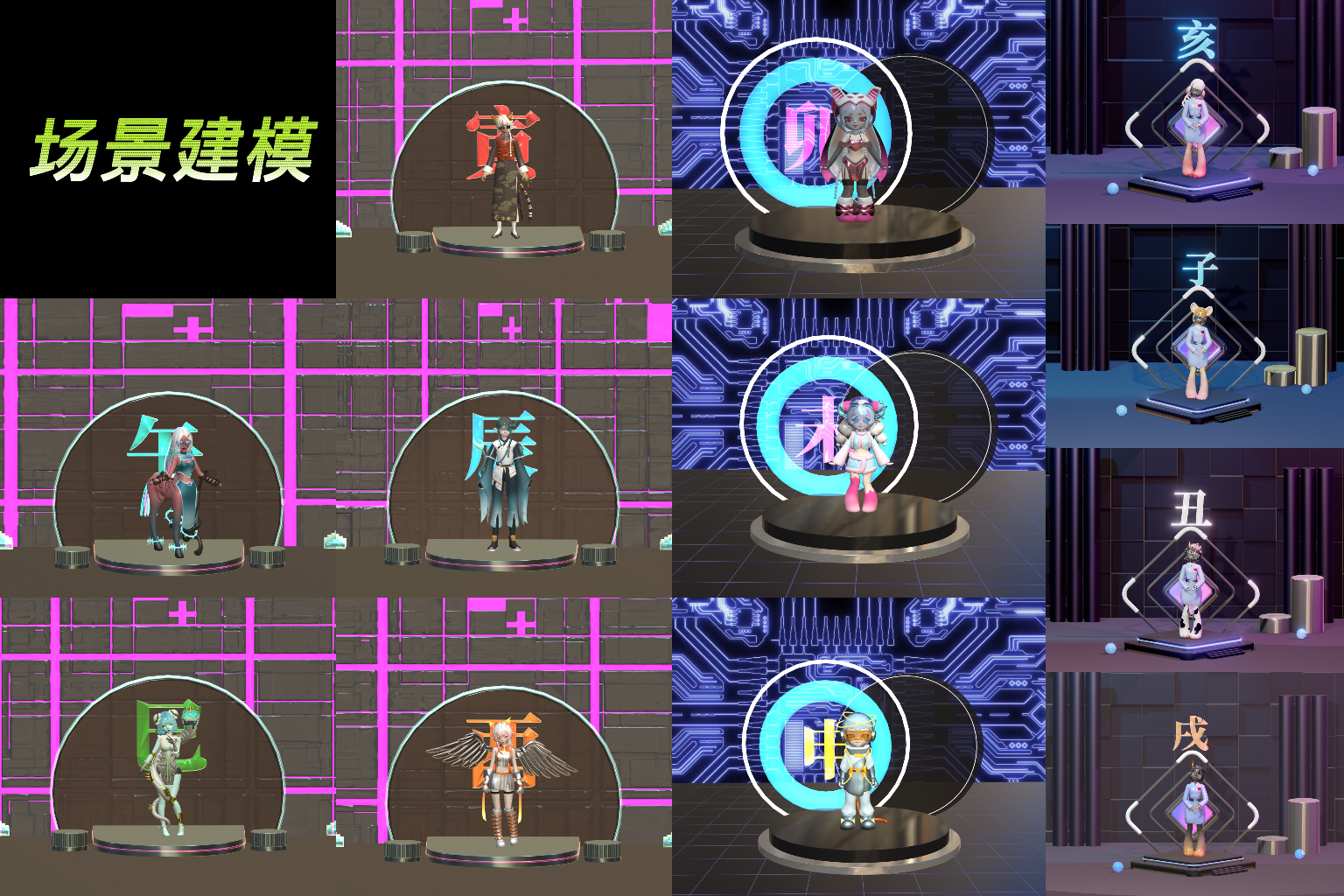 作品简介:“十二生肖”赛博国潮角色IP设计运用充满科幻色彩的赛博朋克风格与中华传统服饰元素巧妙融合,刻画出系列新颖、别具一格的生肖形象,并将角色建模及场景建模通过视频展示与交互展示。希望通过对非遗文化中具体形象所呈现的多元化表现形式,让人们感受到中国传统非遗文化的无穷魅力与旺盛的生命力,从而积极践行地保护和传承中华民族传统非遗文化。
