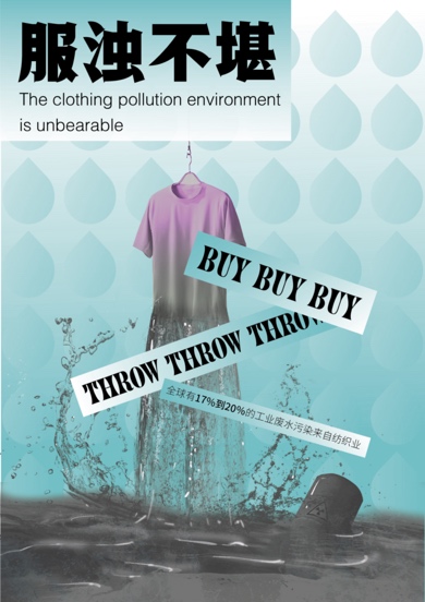 作品简介:本设计以“快时尚污染”带来的三类环境污染“水污染”、“大气污染”、“服装垃圾”为主题制作了三组海报,运用了创意图形,图片拼贴的形式来进行设计,本设计希望通过此次海报设计能够充分展示快时尚带来的恶性循环,使人们能够意识到盲目的消费不仅会陷入无穷无尽的消费陷阱,也会对环境造成巨大的损害,唤醒人们提高环境的意识,减少快时尚垃圾的堆积。