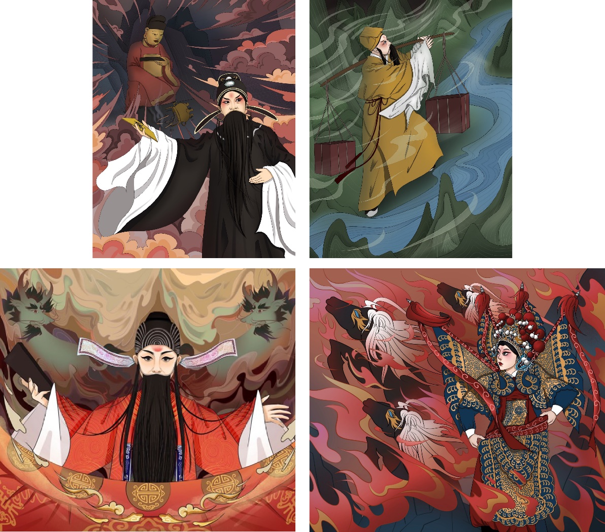 作品简介:以昆曲的艺术与其所提炼的传统文化元素,制作一系列昆曲插画作品并选择一幅使用掐丝珐琅将其表现出来。主要通过对昆曲剧目的了解和分析、以剧目中人物和行为为着重点进行创意思路解析,不断欣赏钻研,了解人物情感,以插画的形式将其表现出来,并进行掐丝珐琅和其衍生品的制作,以此来宣扬和发展中国非遗文化。