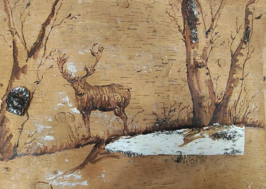 作品简介:设计内容为三幅桦皮画及三个相对应的增强现实虚拟影片。分别通过肃杀美、生机美、野性美三个特点,来表达东北地区的钟灵毓秀。肃杀美描写东北雪景;生机美描写严冬过后植物复苏后的场景;野性美描写动物在环境中的生活。