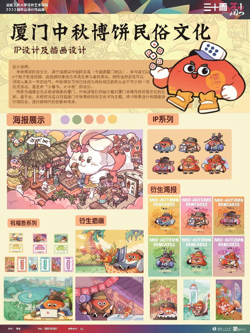 作品简介:厦门作为福建省热门旅游城市,但富有地域特色的本土优秀传统民俗文化却鲜为人知。本项目尝试将博饼文化与IP形象和插画相结合,为传统习俗文化在新时代下的传播和发展赋能。