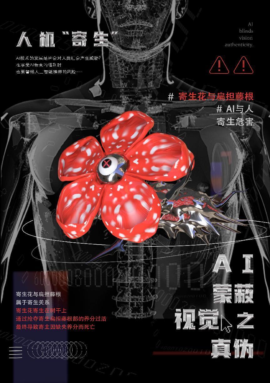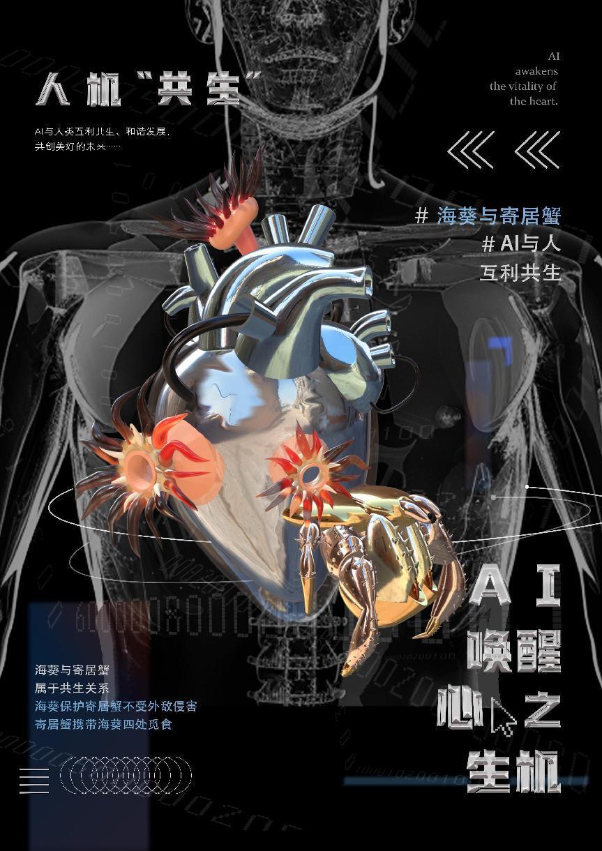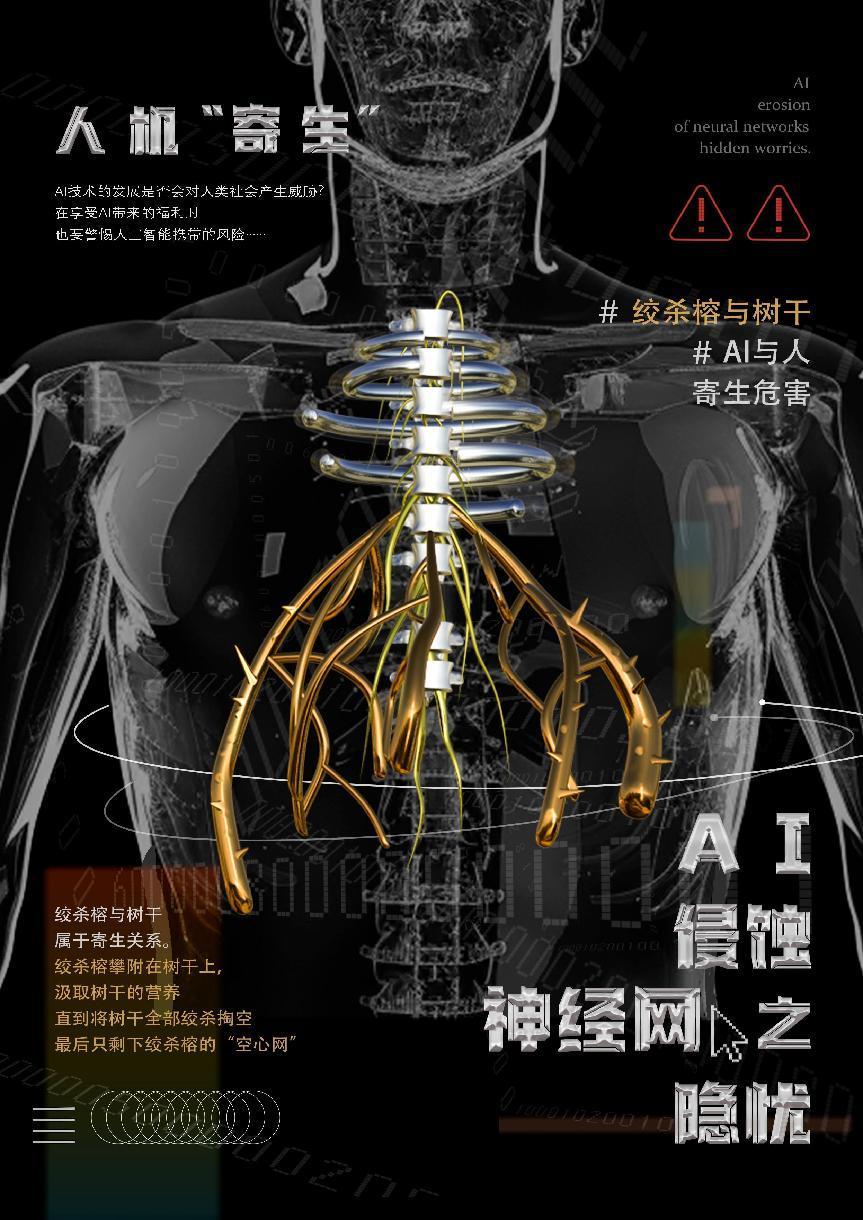作品简介:人工智能对人类未来世界究竟是福还是祸?——这是当下乃至未来都要长久探讨的课题。在此背景下,人类与AI的关系就显得微妙且复杂,就像生物界中的“寄生关系”与“共生关系”,分别对应了人工智能对人类社会未来发展的“弊”与“利”的影响。
