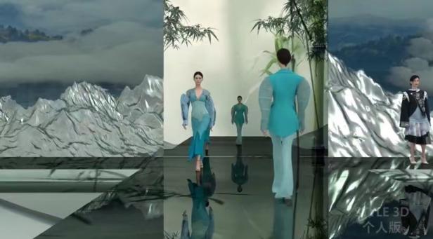 作品简介:从新中式风格的虚拟服装中提取竹子和山水等元素来设计虚拟走秀场景。虚拟服装走秀动画中采用骨骼绑定技术,使得虚拟模特能够在场景中自由行走、转身和摆动裙摆。最后,将所有元素合成到一起,形成一部完整的虚拟走秀视频。在后期合成过程中,对颜色、亮度和对比度等参数进行了细致的调整,以确保最终视频的画质和观感达到最佳状态。