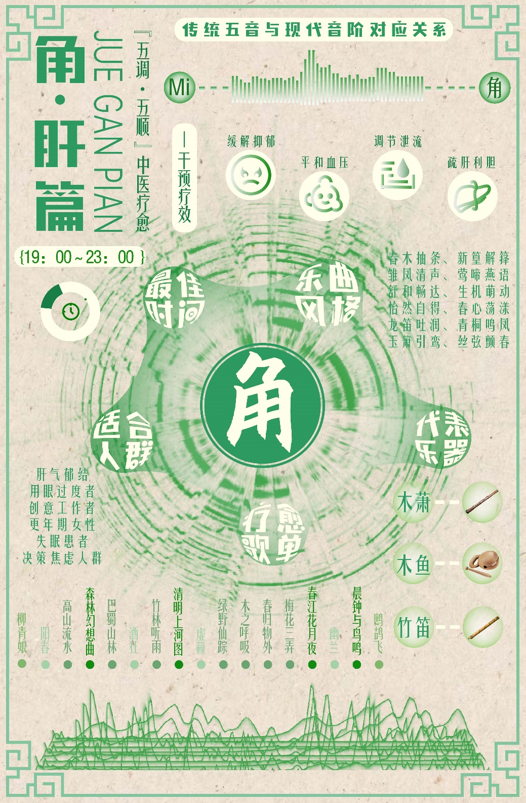 作品简介:“五调·五顺”以中医五音疗愈为主题,聚焦于现代亚健康人群的增多、年轻人对朋克养生的追捧,以及中医非遗文化的传承与科普。通过信息架构与视觉传达,将中医五音疗法的智慧以生动有趣的方式呈现,旨在让更多人了解其独特魅力,倡导健康、和谐的生活理念,实现身心的“五调”与生活的“五顺”。