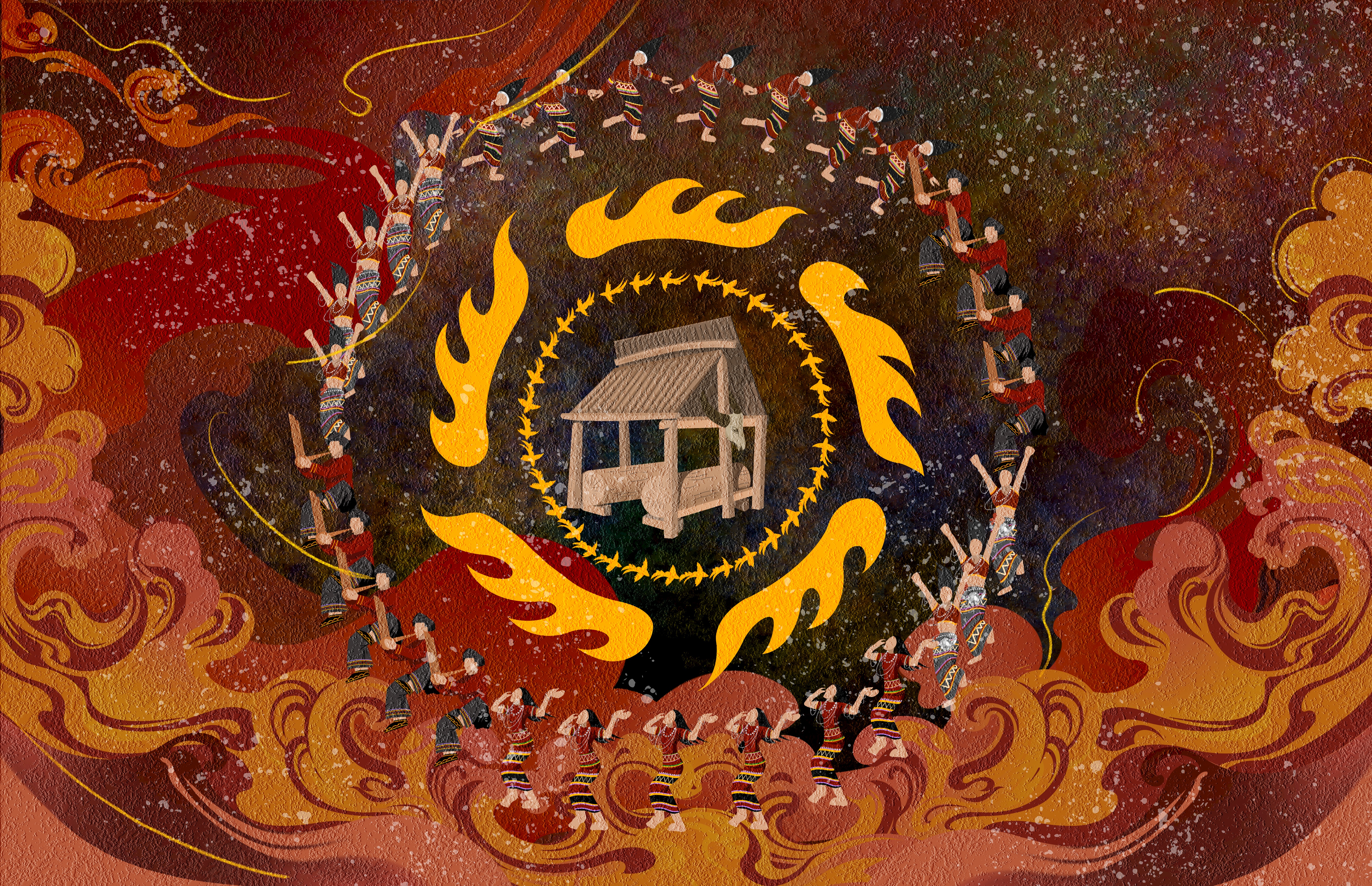 本设计作品是以沧源佤族的创世神话《司岗里》传说的故事情节为基础,以视觉传达设计中的动态插画、衍生品两种形式,将传统的佤族文化进行创新型的设计表达,力求能够以此作品推动佤族非遗文化《司岗里》传说的传播和保护,让佤族文化迸发新的生机与活力。