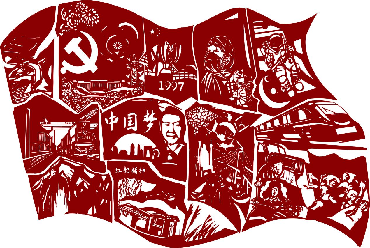 王皓东 马幸茹作品简介:“与光同行,跟党践行”是一件结合剪纸与雕刻技术的镂空雕刻装置艺术设计。通过平面剪纸和镂空装置的巧妙结合,搭配光影效果,保留了民间剪纸的风格特点的同时在空间形态和视觉表现方面进行了突破和创新,并运用现代设计理念中的光影和空间装置元素,打造出一个集“场地+材料+情感”于一体的综合展示效果。一面由大小不一的红色精神文化装置拼接而成的旗帜,彰显了党建精神的青春活力,此设计以微薄之力、热诚之心宣传党建精神与革命精神,让人们铭记过去、总结现在、展望未来。