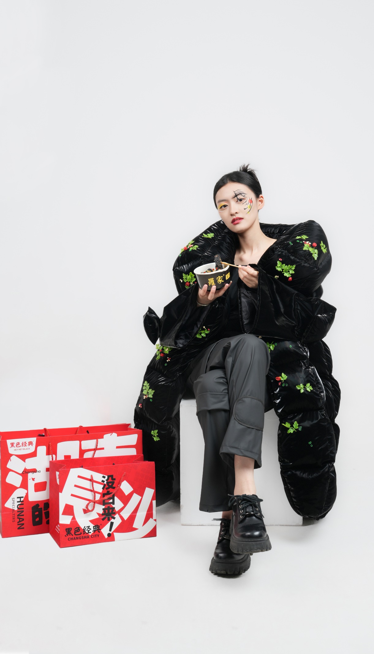 刘宇婷作品简介:本设计选取了湖南长沙特色的三种美食:臭豆腐、糖油粑粑和小龙虾,将这些耳熟能详的美食,提取出形状与颜色,用充棉的形式来体现美食的体积感,选取轻薄亮面的面料让服装看起来厚重,减弱充棉带来的沉重感,让本设计更加前卫时尚,尽显美食与服装的魅力,让大家感受到国际化城市特色美食的魔法。