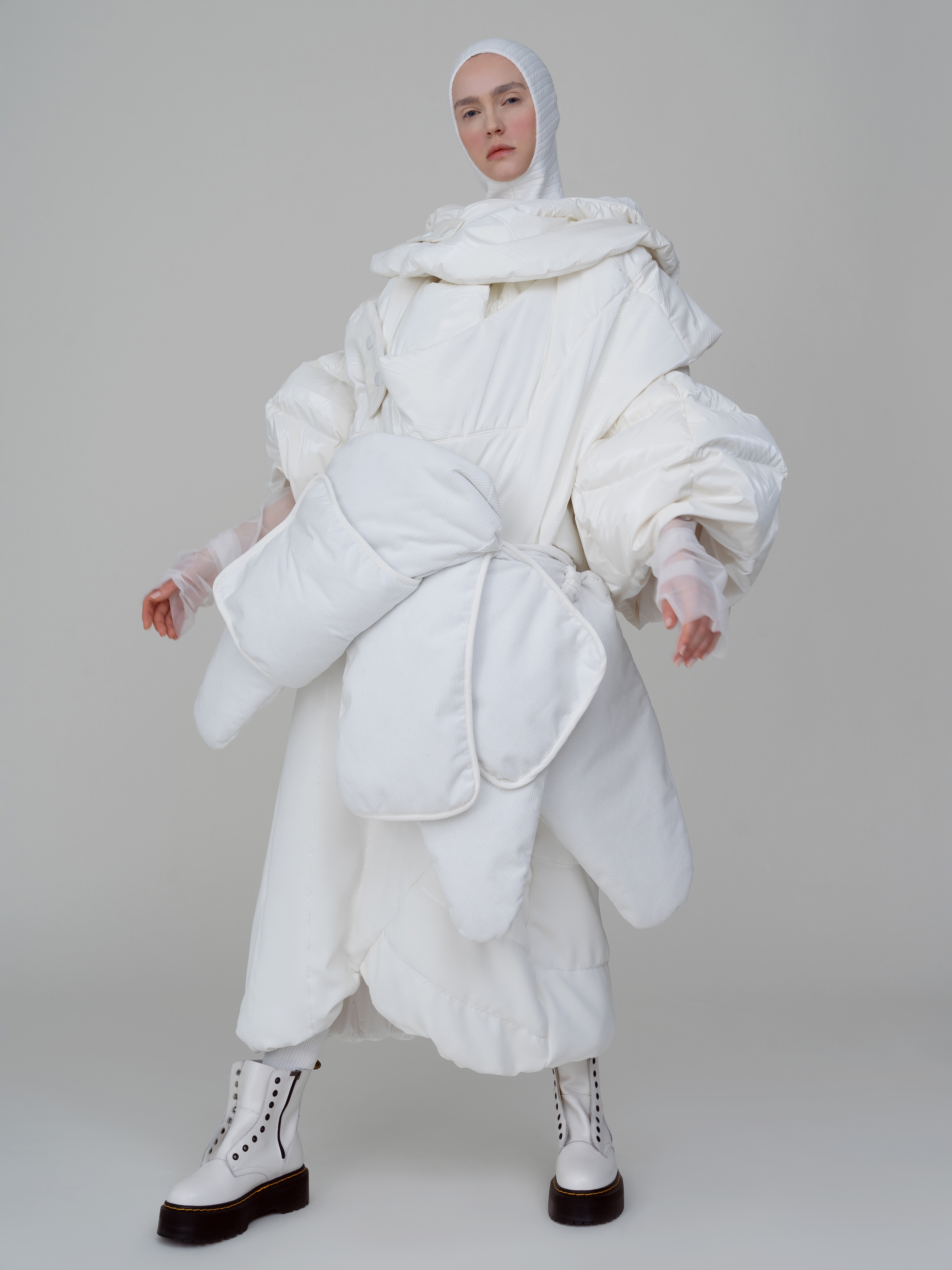 王佳懿作品简介:本系列设计以未来与科技为主题,灵感来源于电影《银翼杀手2049》,背景最是科技高运发达的未来世界,以未来世界中的建筑与仿生人为主要元素,从扎哈哈迪德等现代建筑大师的代表作中提取线条结构,运用流动的线感来表达建筑感的结构,从主题灵感来源电影《银翼杀手2049中》提取仿生人的机械元素丰富设计细节。
