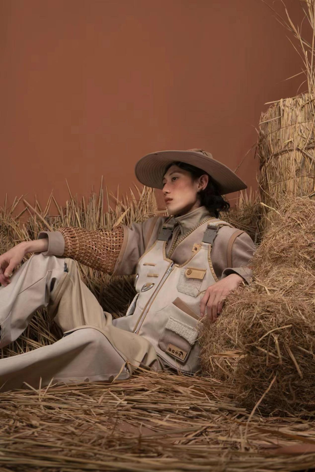 李秉华作品简介:小时候读叶圣陶童话中的稻草人,让我知道什么是勇敢和善良。稻草人永远不知疲倦,伫立田间耐心地等待着天亮,追逐光明。毕业设计我借用民间草编工艺手法设计系列服装《逐光而行》,其灵感由此而来。
