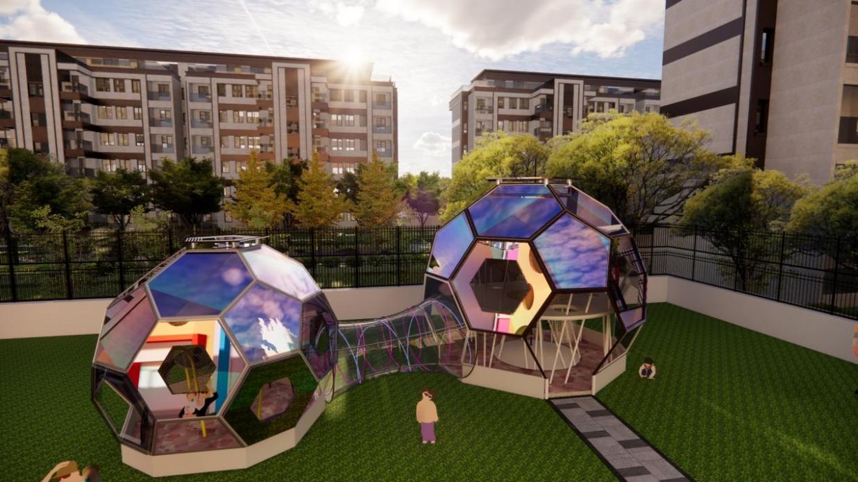 张晨作品简介:本作品旨在以长沙市岳麓区洋湖幼儿园为例的公共艺术品设计。从幼儿园公共环境出发、幼儿作为第一视角、融入办园特色,使环境注入新的生命力。结合幼儿的生活、兴趣和需求进行设计,从而提高艺术品的吸引力和互动性,以达到更好的教育效果,提高教育水平,从而推动幼儿园空间公共艺术设计的发展。