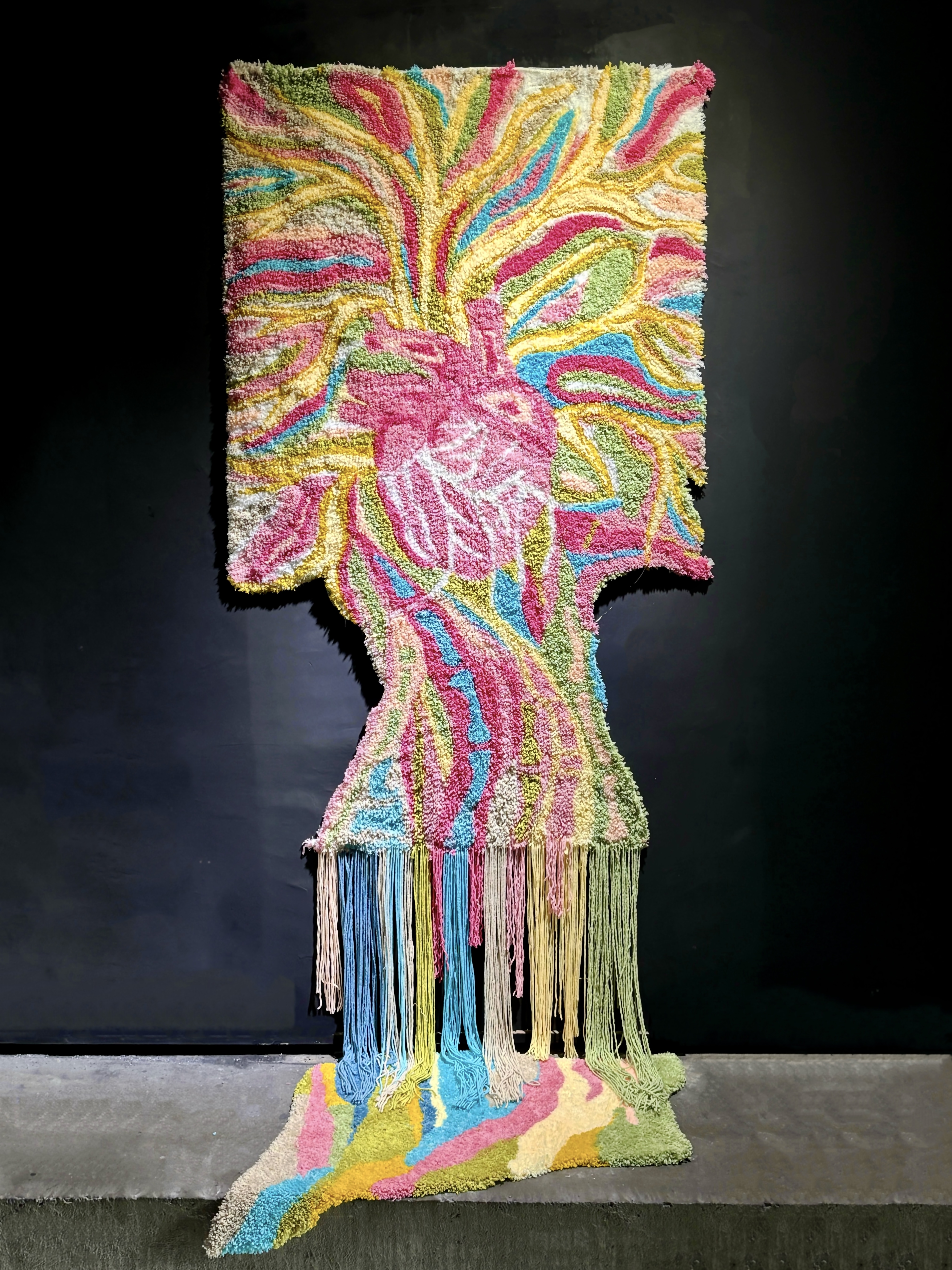 刘华秋本作品以tufting挂毯为载体,聚焦于情感疗愈,旨在呼吁人们关注自我,倾听内心真实声音,摆脱社会角色的过度纠结。设计借树喻人,通过视觉上鲜艳明亮的色彩、触觉上柔软的质感、听觉上轻松的音效,构建多维度疗愈体验,让观者在沉浸式感受之中,实现情感疏导与自我认知的共鸣。