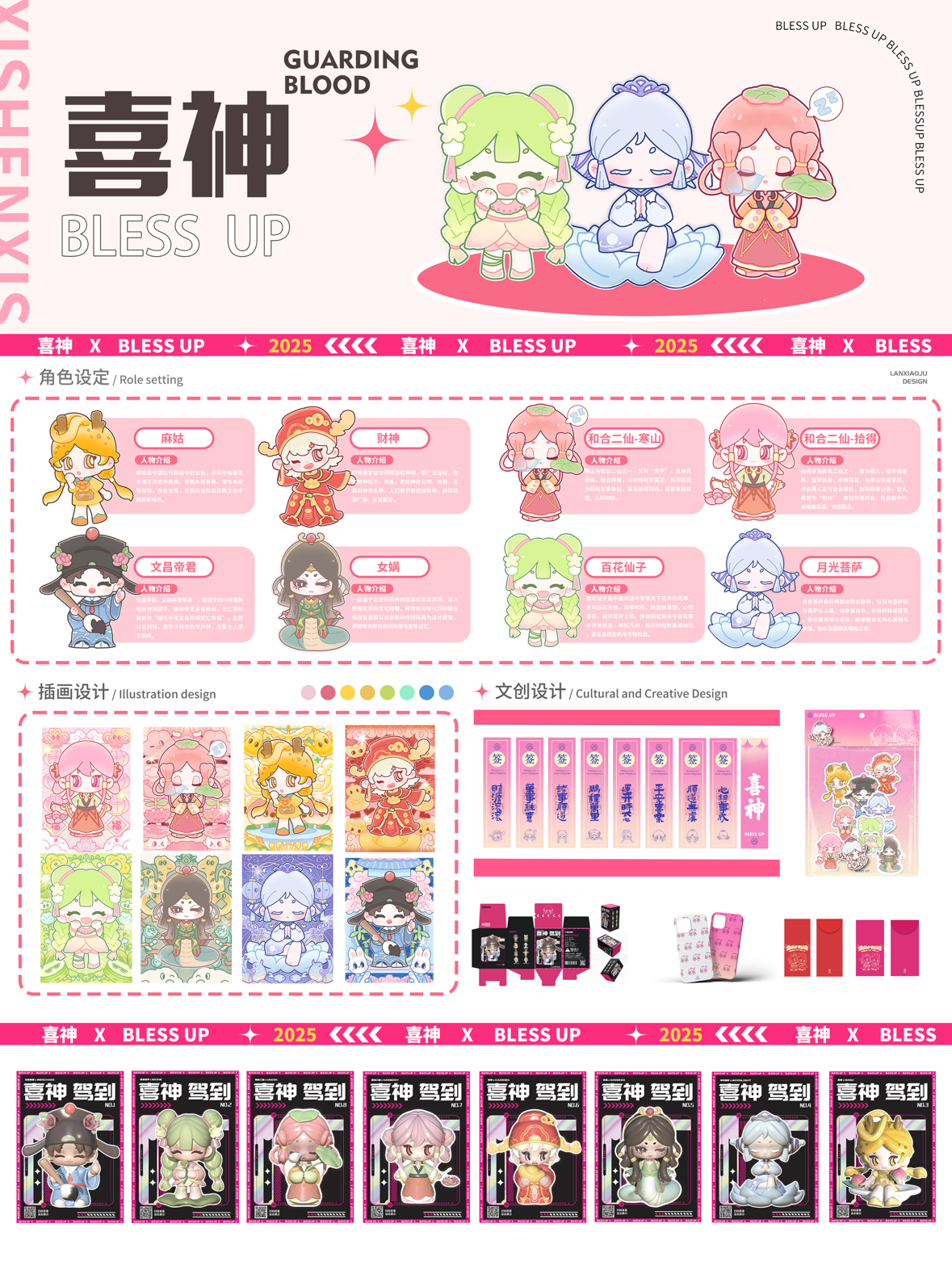 常欣桐、陈嘉欣喜神将传统的喜神如百花仙子、和合二仙等与元宇宙IP形象相结合即喜文化的信仰以及对喜神的崇拜来进行切入点对喜神相关的传统元素进行重新解读和呈现利用喜文化并衍生出相应的 IP形象文创产品插画设计作品实物展示建模3D打印实物展示
