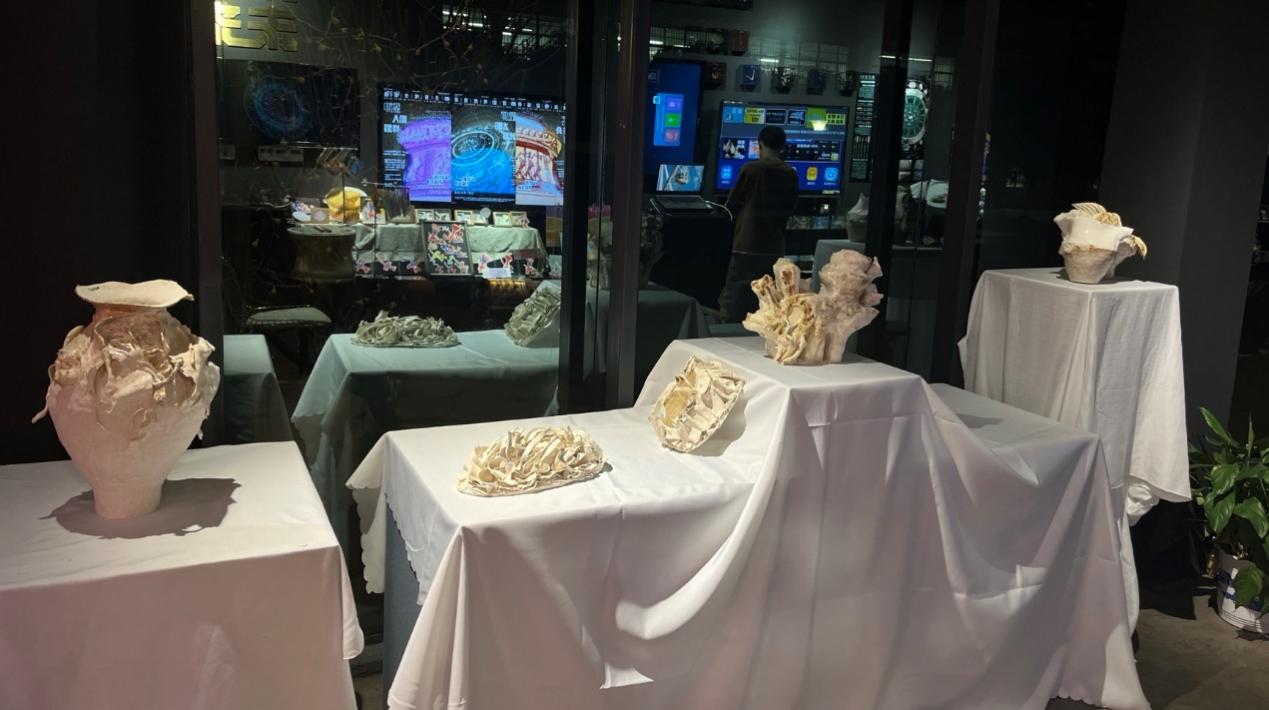 郭茹钰作品从海螺、珊瑚礁、海浪等元素中提取形态,塑造一个以陶瓷材料为主的拟态自然空间。自然界按照自身的演变逻辑发展,它的秩序不受到干扰与强迫。而当我们正视自身时,也能察觉出“自然而然”的发展脉络。当海浪褪去,滩涂上留下了人类与自然共同塑造的痕迹,宛如从一场宁静的漂流中退却,而又将继续存在无数个世纪。