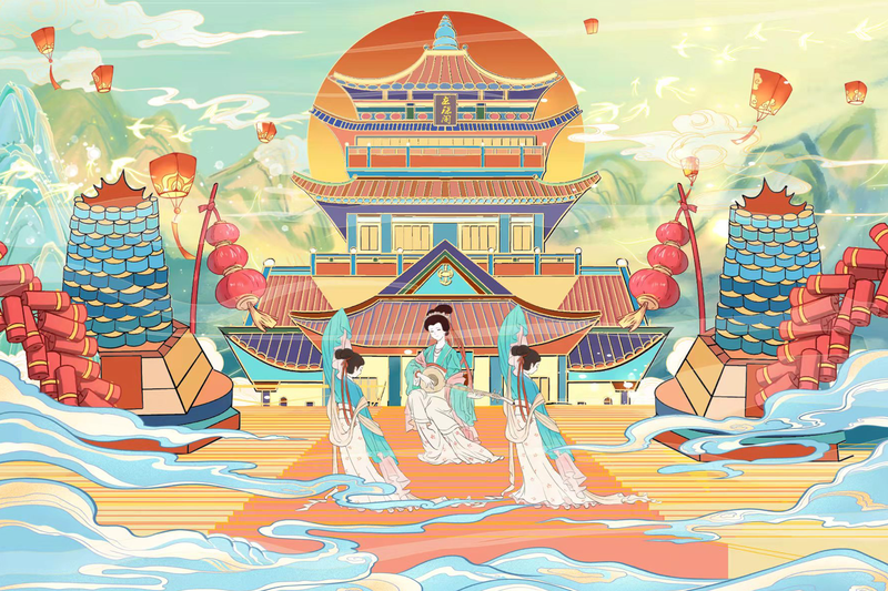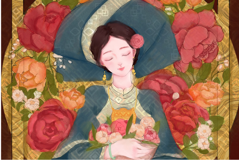 作者:肖欣雨作品简介:插画设计主题是围绕刘三姐的故事进行绘画的,以《刘三姐》的故事的作为插画内容设计的方向,用插画的方式来诠释,通过壮锦的装饰性与刘三姐故事的结合,丰富画面文化层次,利用合理的表现手法与符合现代艺术特色的手段,让大家对壮锦和刘三姐的故事等壮乡文化瑰宝有能进一步认识。
