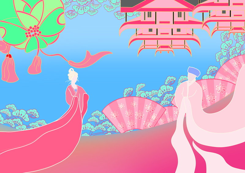 作者:刘雪晴作品简介:根据湘剧《拜月记》创作插画,在插画设计的中融入Y2K的风格。结合当下流行趋势,更能让年轻人所接受和了解,增加兴趣。经典的年代感与未来的科技感相碰撞。这与插画的经典戏曲文化与现代的审美的结合有异曲同工之妙。因为Y2K不仅仅是对过去经典的怀旧,更是对未来乌托邦式的美好期望。传达出希望湘剧的未来发展的更好的美好愿望。
