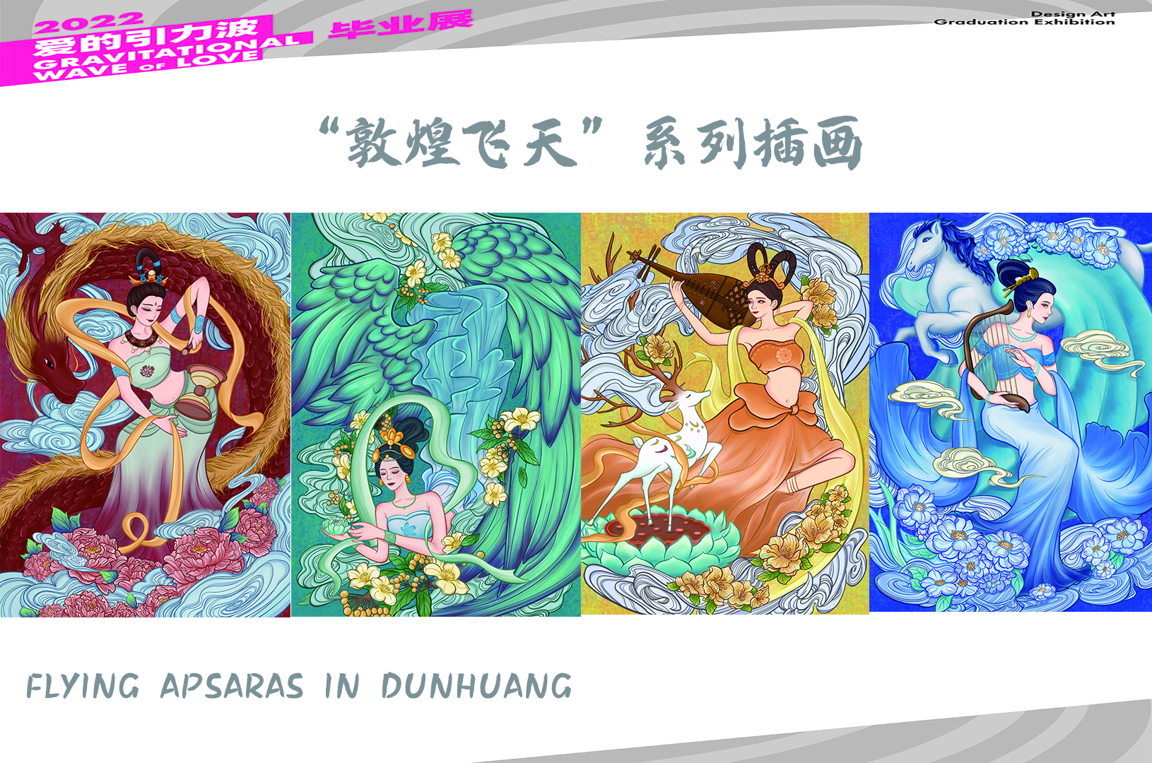 作者:王璐瑶作品简介:本文旨在探索传统艺术与现代设计结合的新途径。通过对飞天经典形象进行艺术创新,创作出新型视觉效果的飞天形象系列插画,进而将敦煌飞天中蕴含的审美精神和现代皮雕工艺相融合,打造具有民族特色的新时代艺术产物。不仅为民族文化找到实用性的载体,同时将将新颖、潮流的创新型工艺文化带到生活中去,真正发挥实用性的作用。